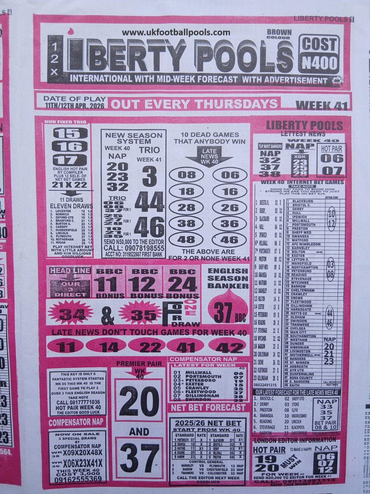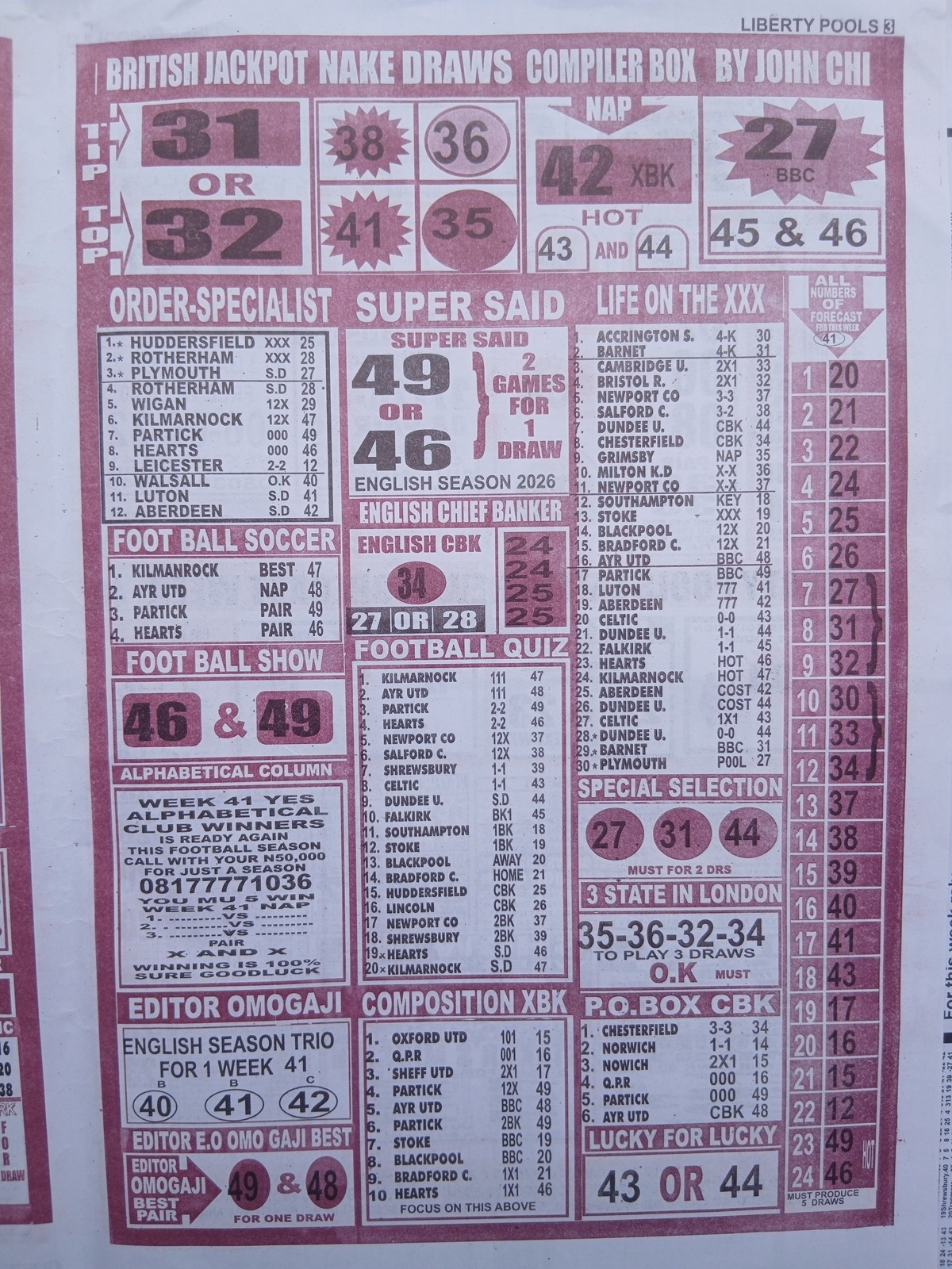Related Post: Week 41 Pool Late News Papers 2026 – UK 2026/2027 Season