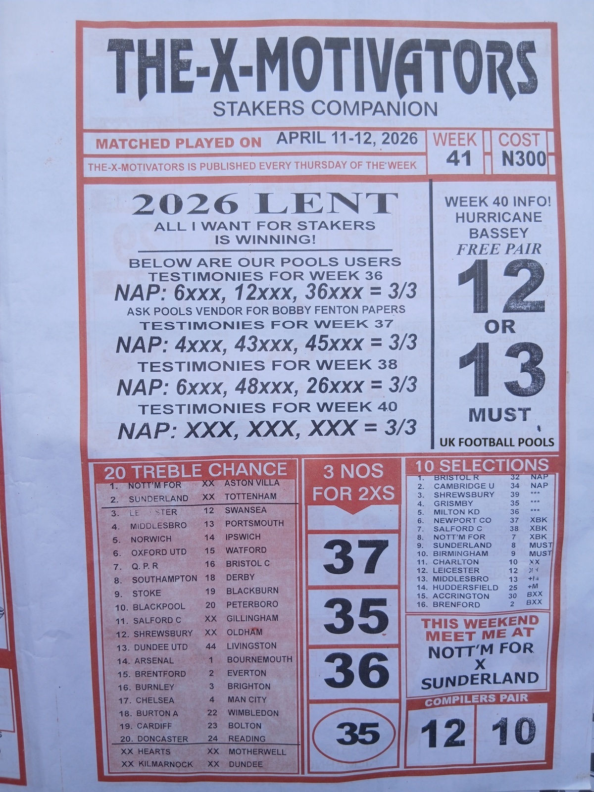This is the total money you are betting with.Whether you’re chasing banker games, strong draws, or safe permutations, these Week 41 pools papers are designed to guide your strategy and maximize your potential returns. Stay informed, play smart, and take a confident step closer to winning this weekend.