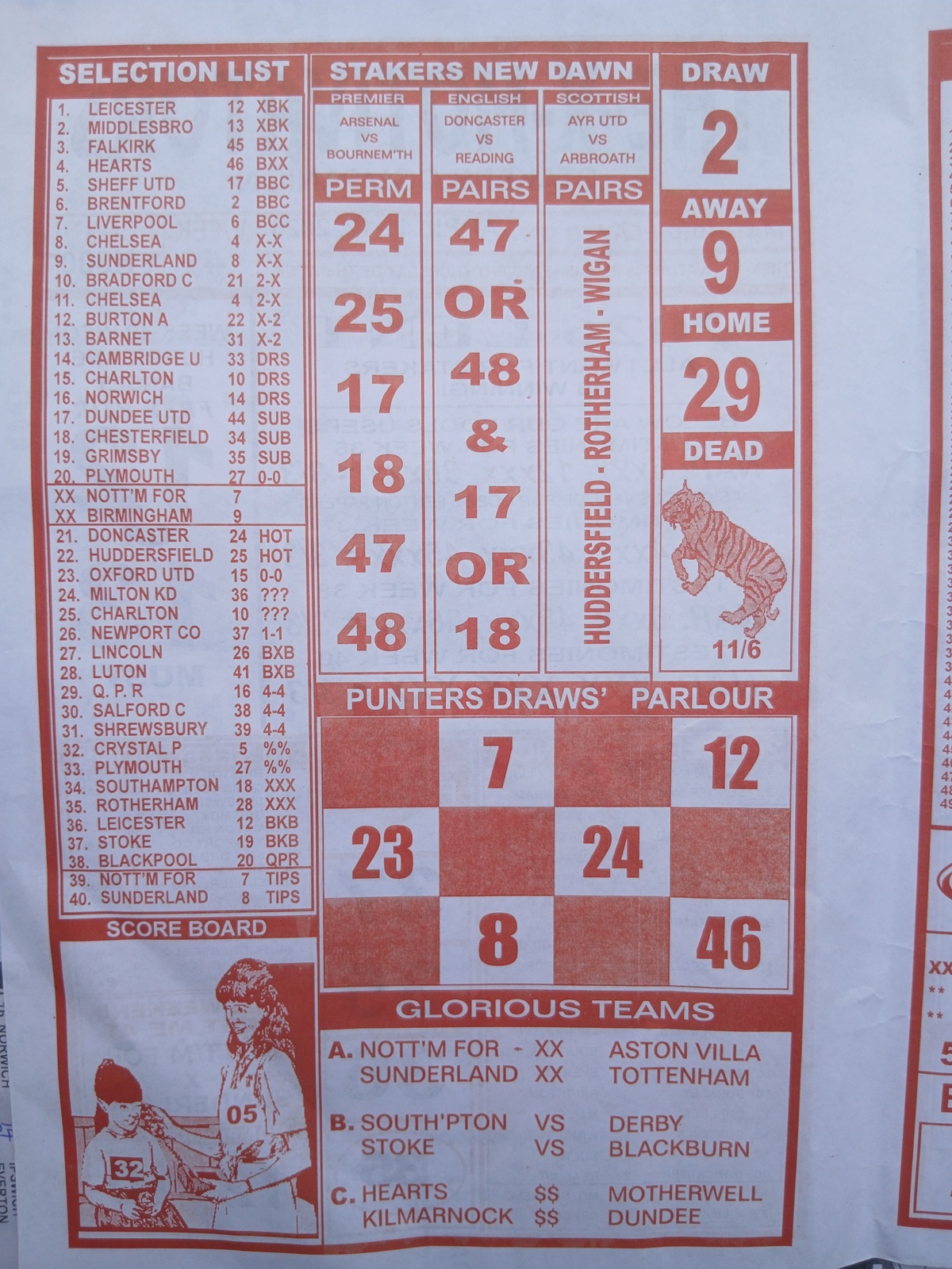 Soccer X Standard, Sporting Telegraph, Sport X Officer, Sporting Informant Late News, Mirror Punters Guide