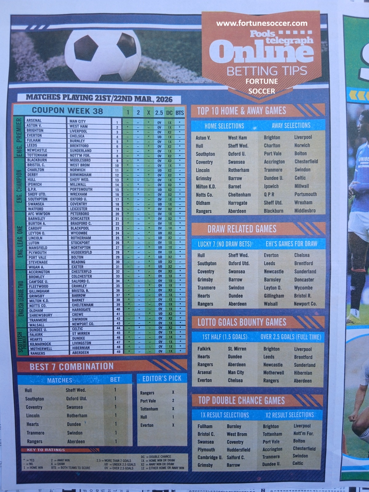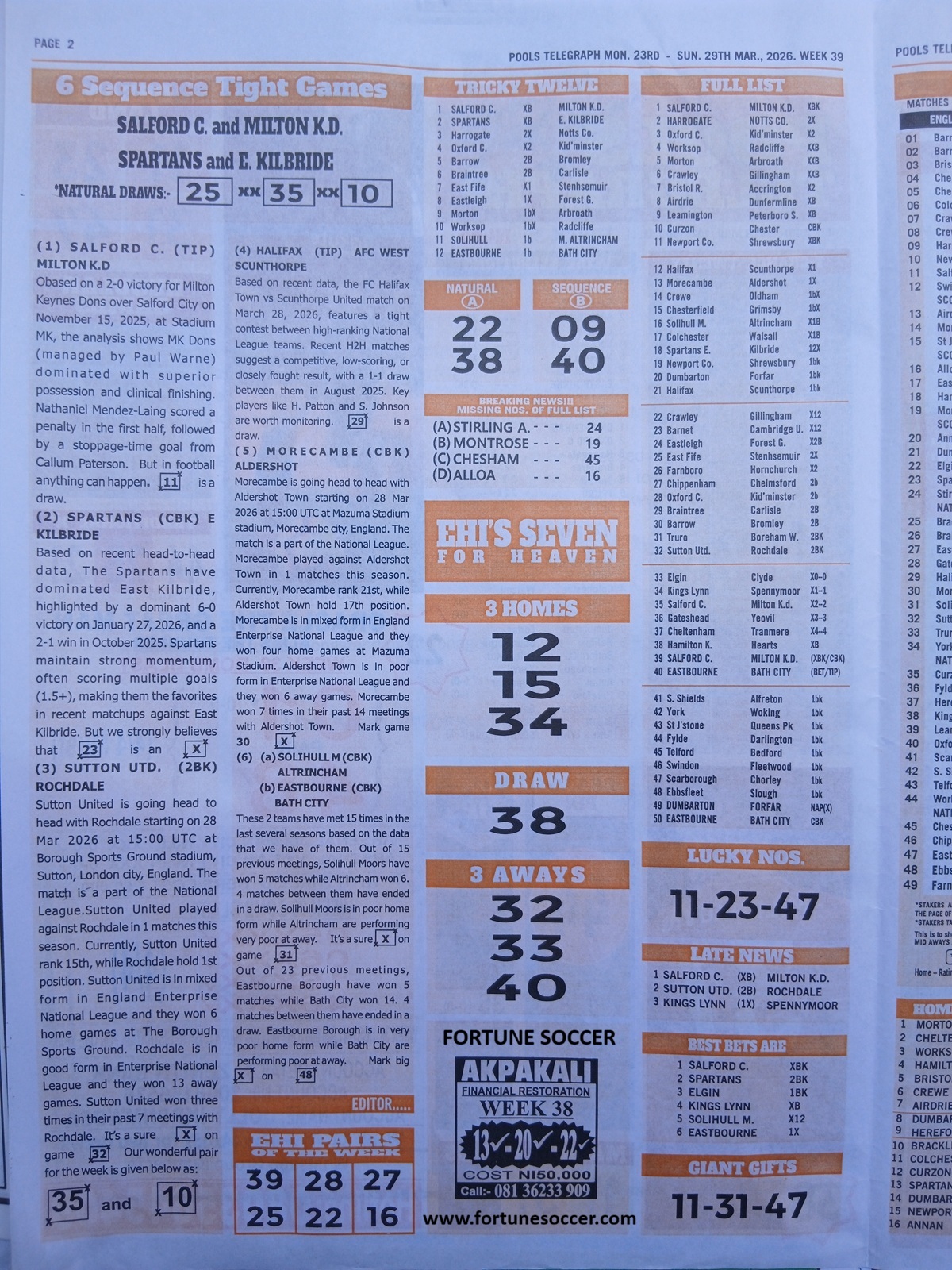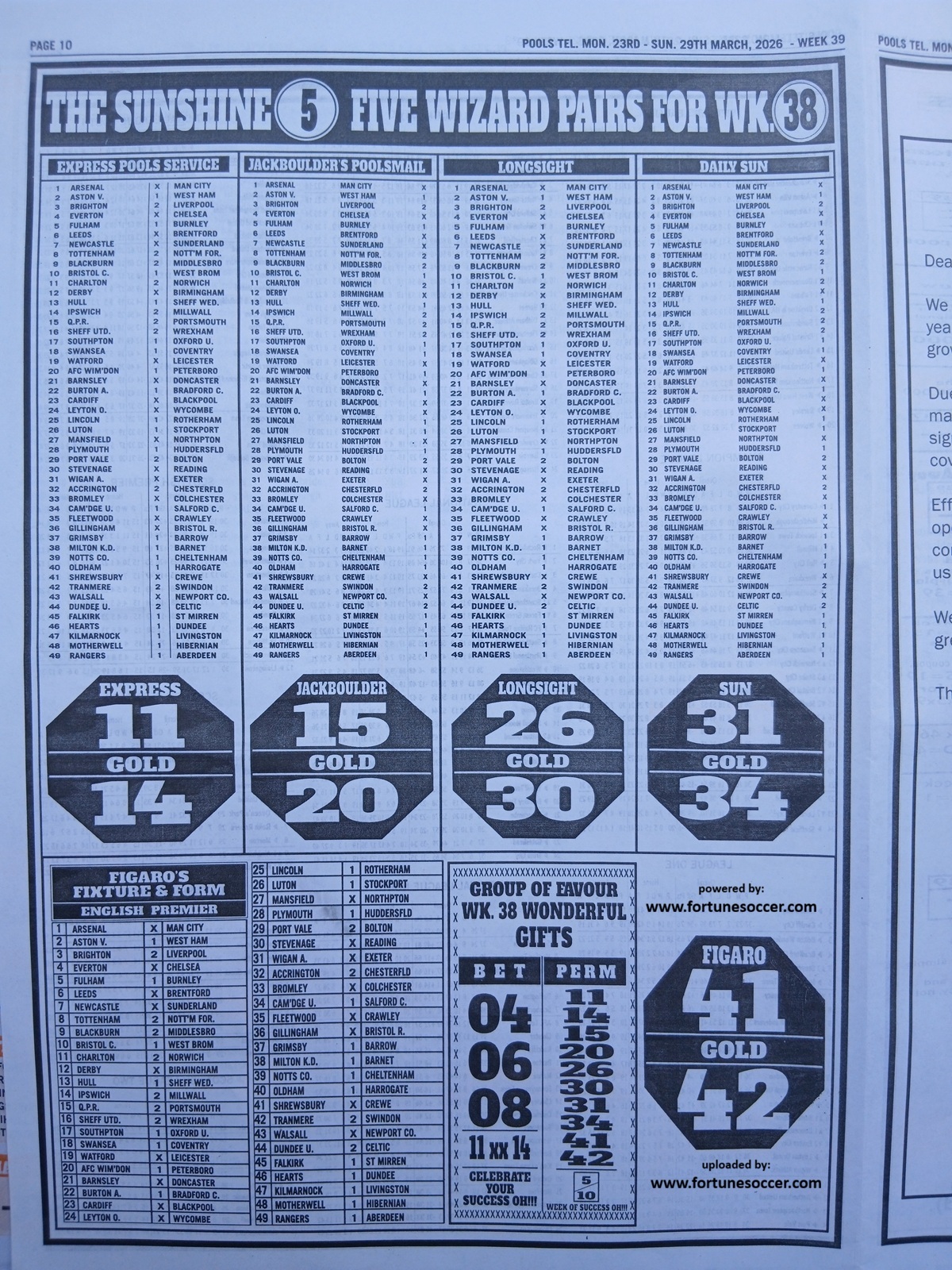 Related Post: Week 39 Pool Late News Papers 2026 for March 28 – UK 2026/2027 Season