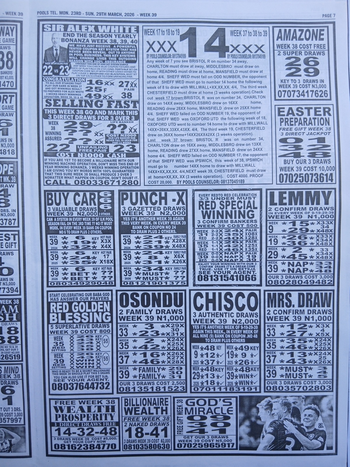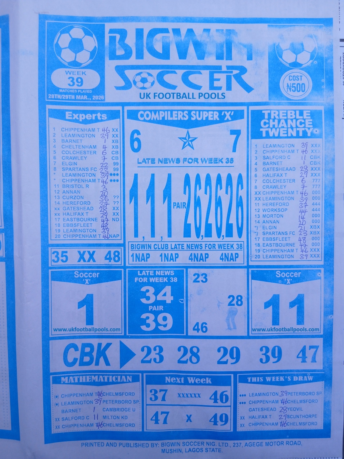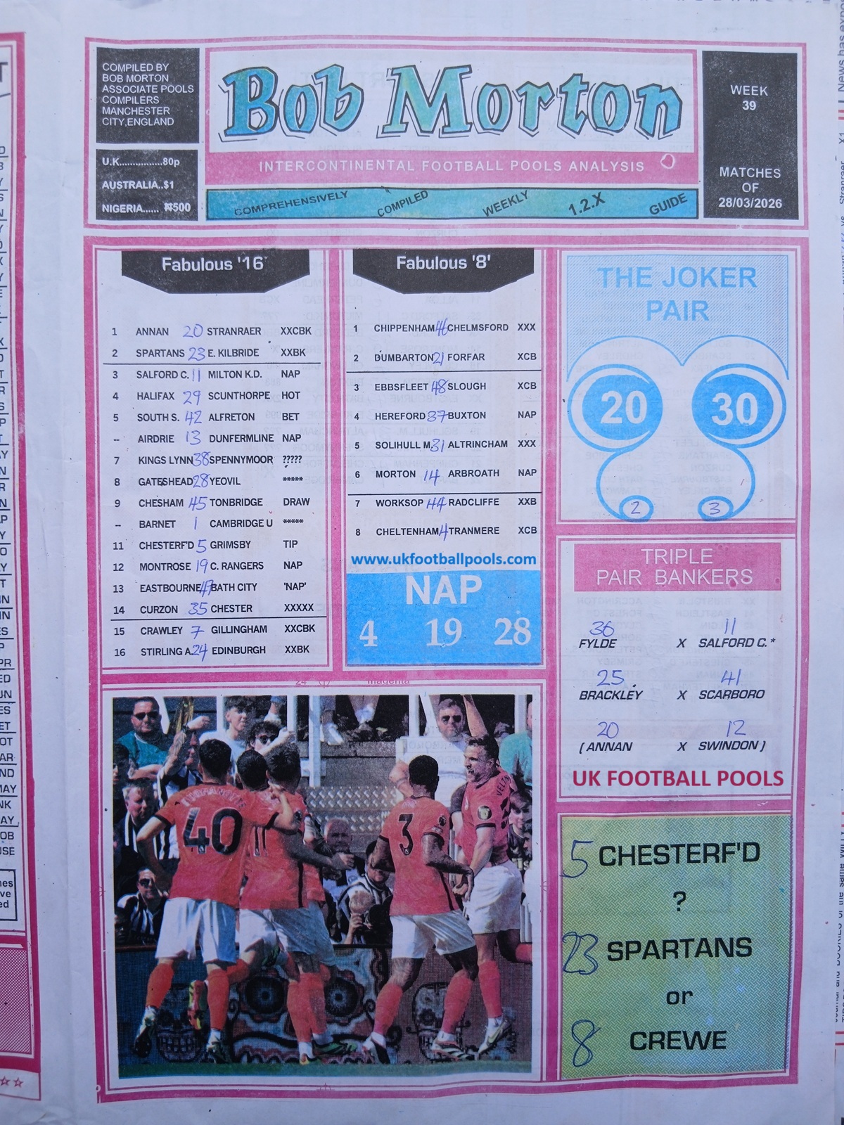 Related Post: Week 39 Pool Late News Papers 2026 for March 28 – UK 2026/2027 Season