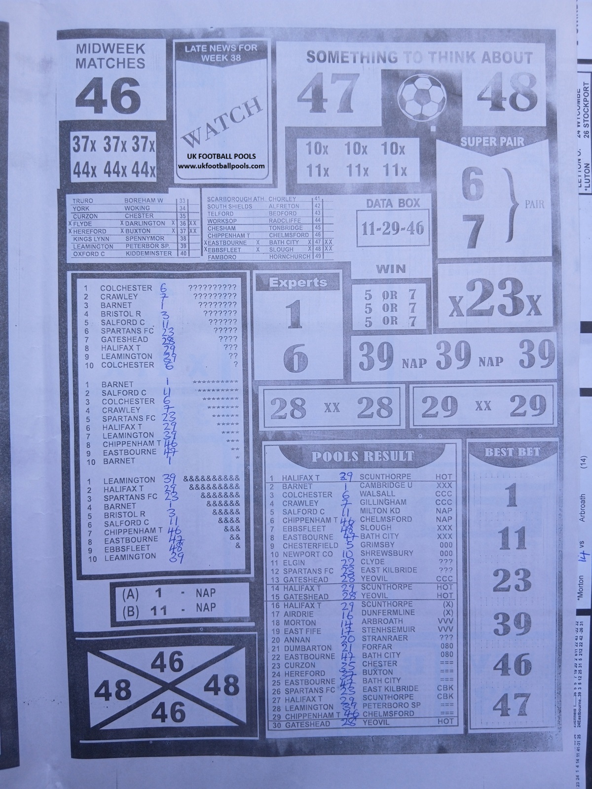 BigWin Soccer remains a favorite among pool forecasters for its consistent late-week accuracy. See Week 39 pool late news papers for bigwin below:
