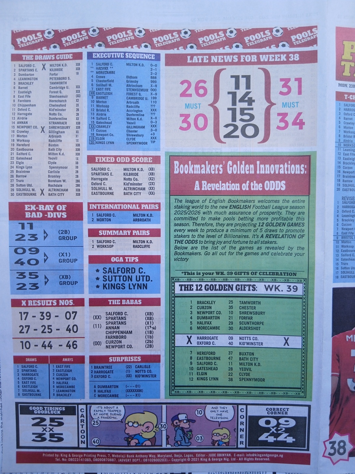These papers offer late-week updates and system-backed predictions. BigWin Soccer is known for its accuracy closer to kickoff, while Pools Telegraph dives deep into analysis and complex systems.