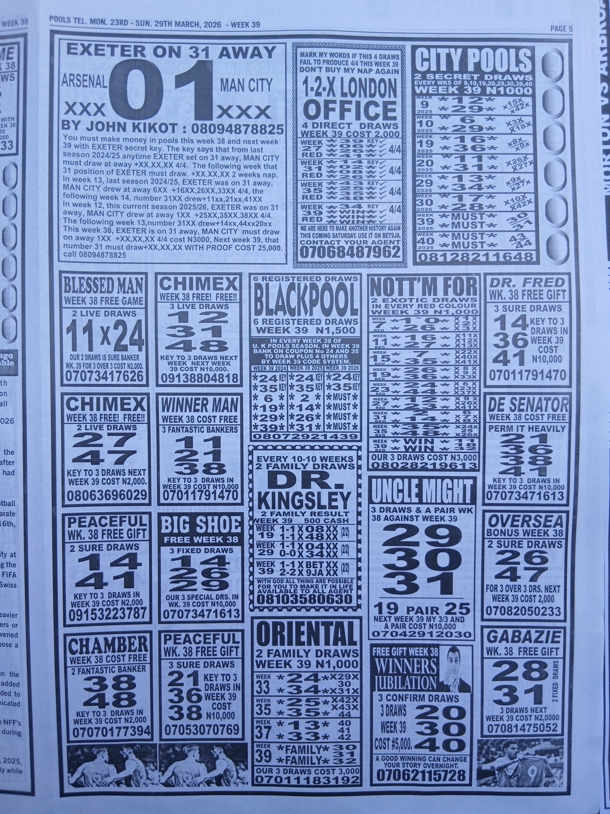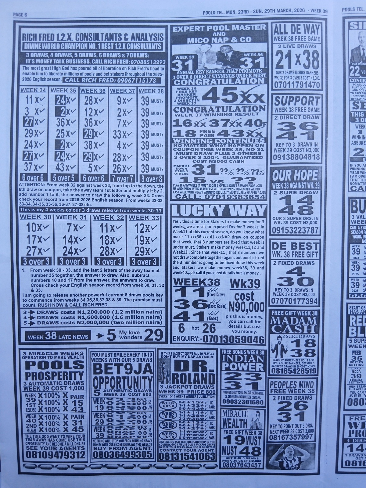 Week 39 Pool RSK Papers 2025/2026: Beyond the well-known RSK papers, we also bring you a variety of other top-tier resources. You can explore papers such as WinStar, BigWin, and Pools Telegraph, which provide additional insights into the weekend’s football action. Additionally, we offer a selection of crucial Pool fixtures and Pool results, including Dream International Fixtures, Special Advance Fixtures, and Right On Football Fixtures.