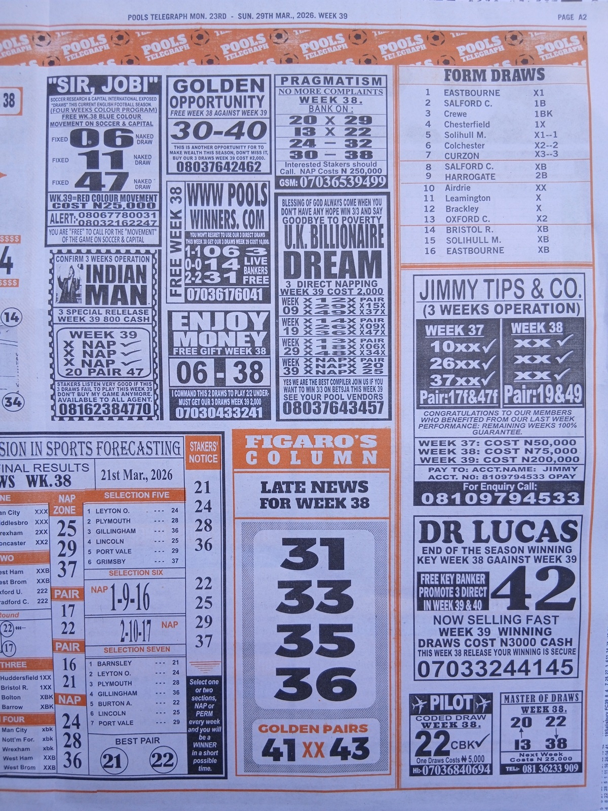 Pool Telegraph focuses on deep analysis and system-backed predictions. Check out the Week 39 late news pool papers for Telegraph below:
