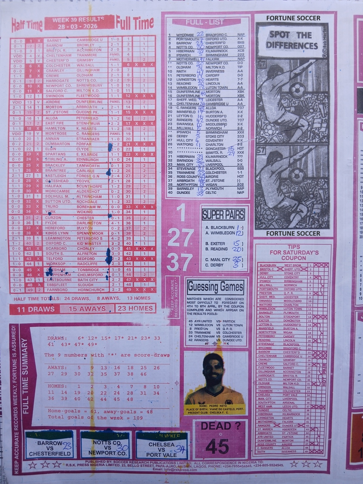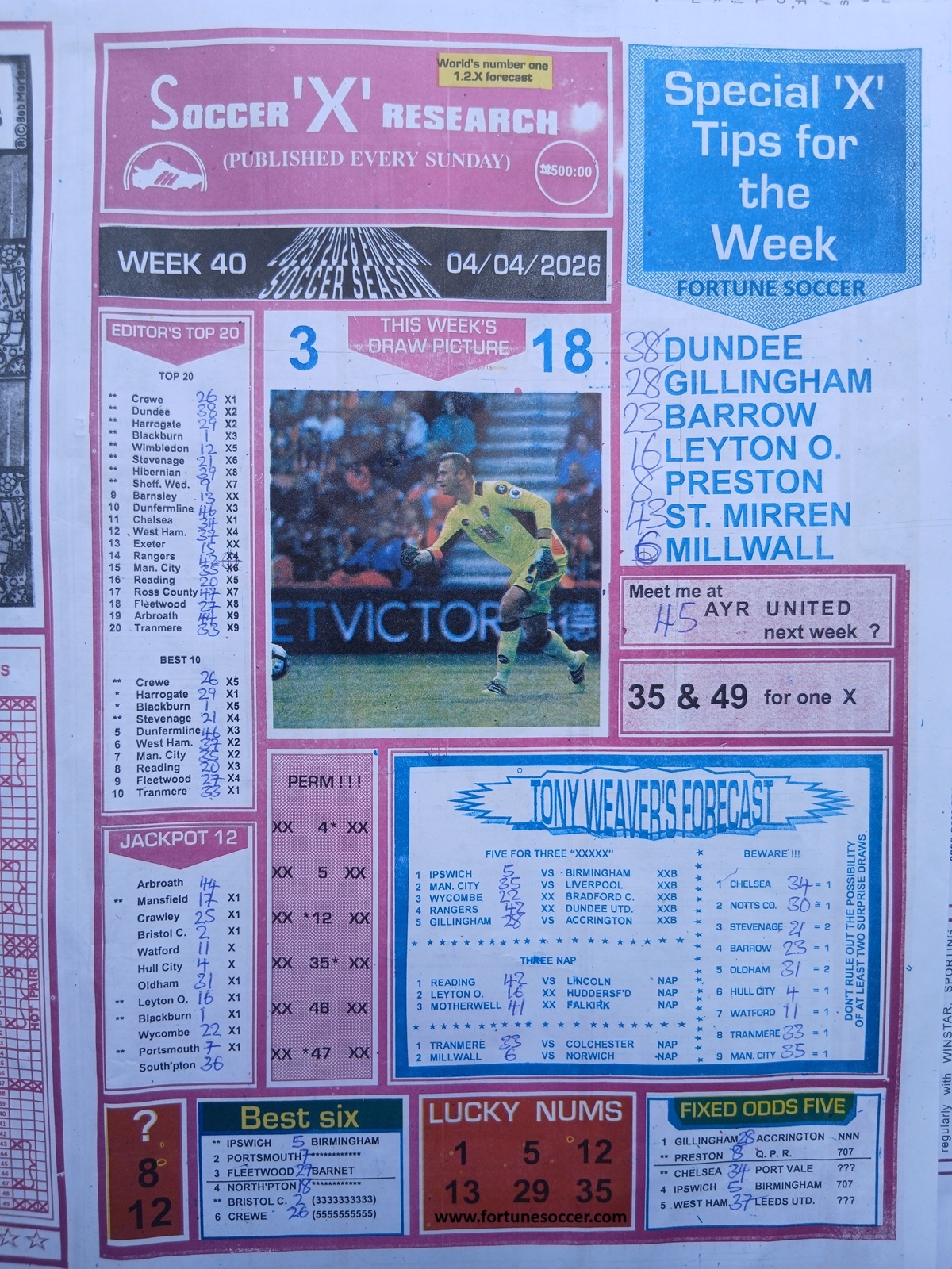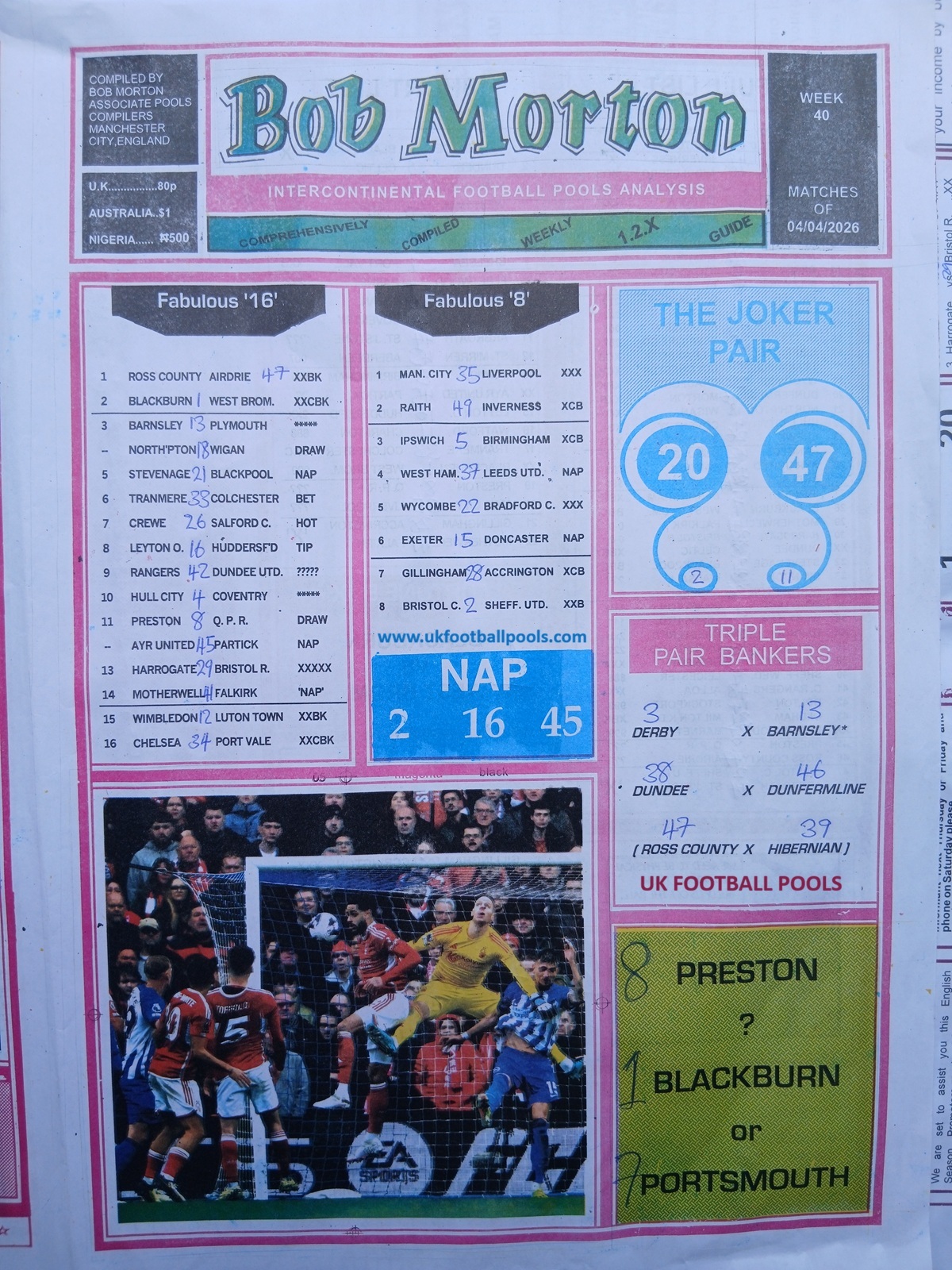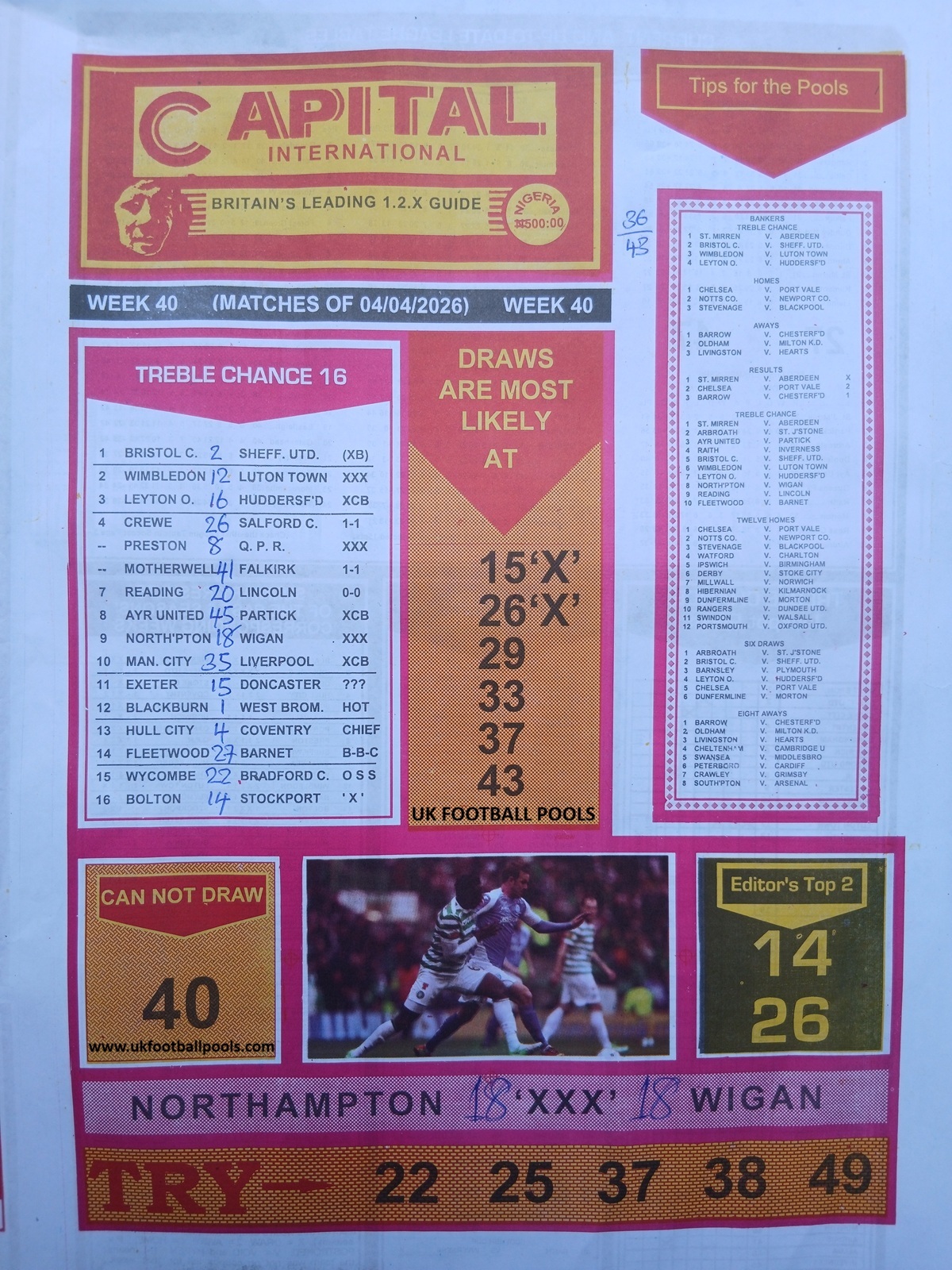 Related Post: Week 40 Pool Late News Papers 2026 for April 4 – UK 2026/2027 Season