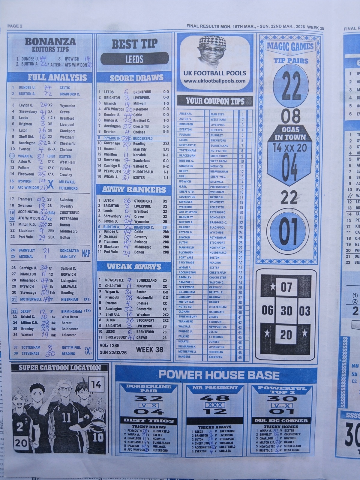 Right On Fixtures, Happy Joe Late News, WinStar Pool Paper, Temple of Draws - CBK Pools Papers