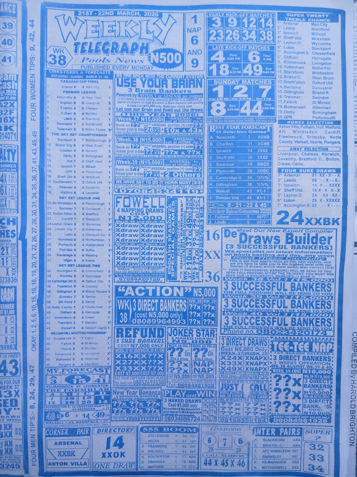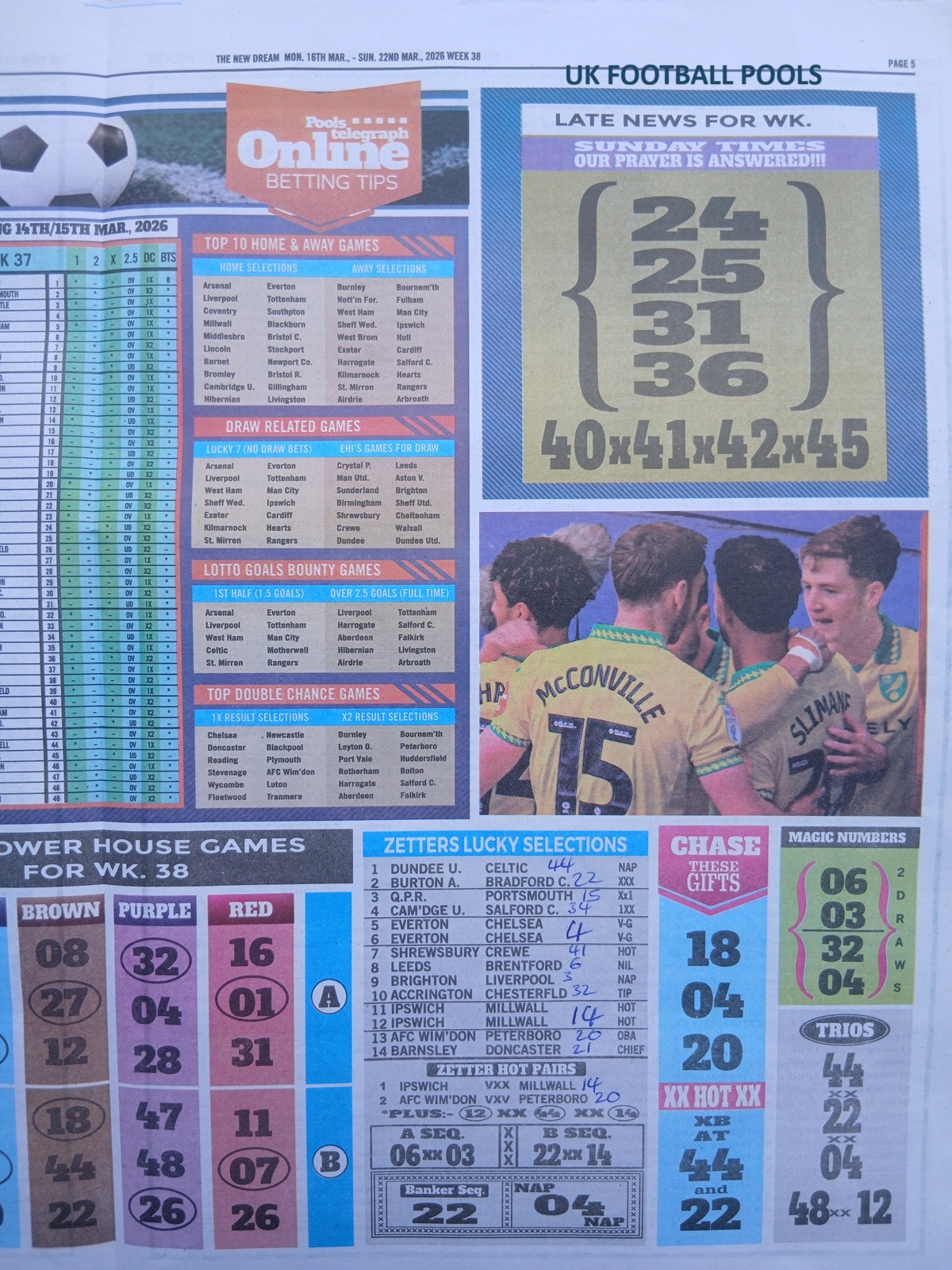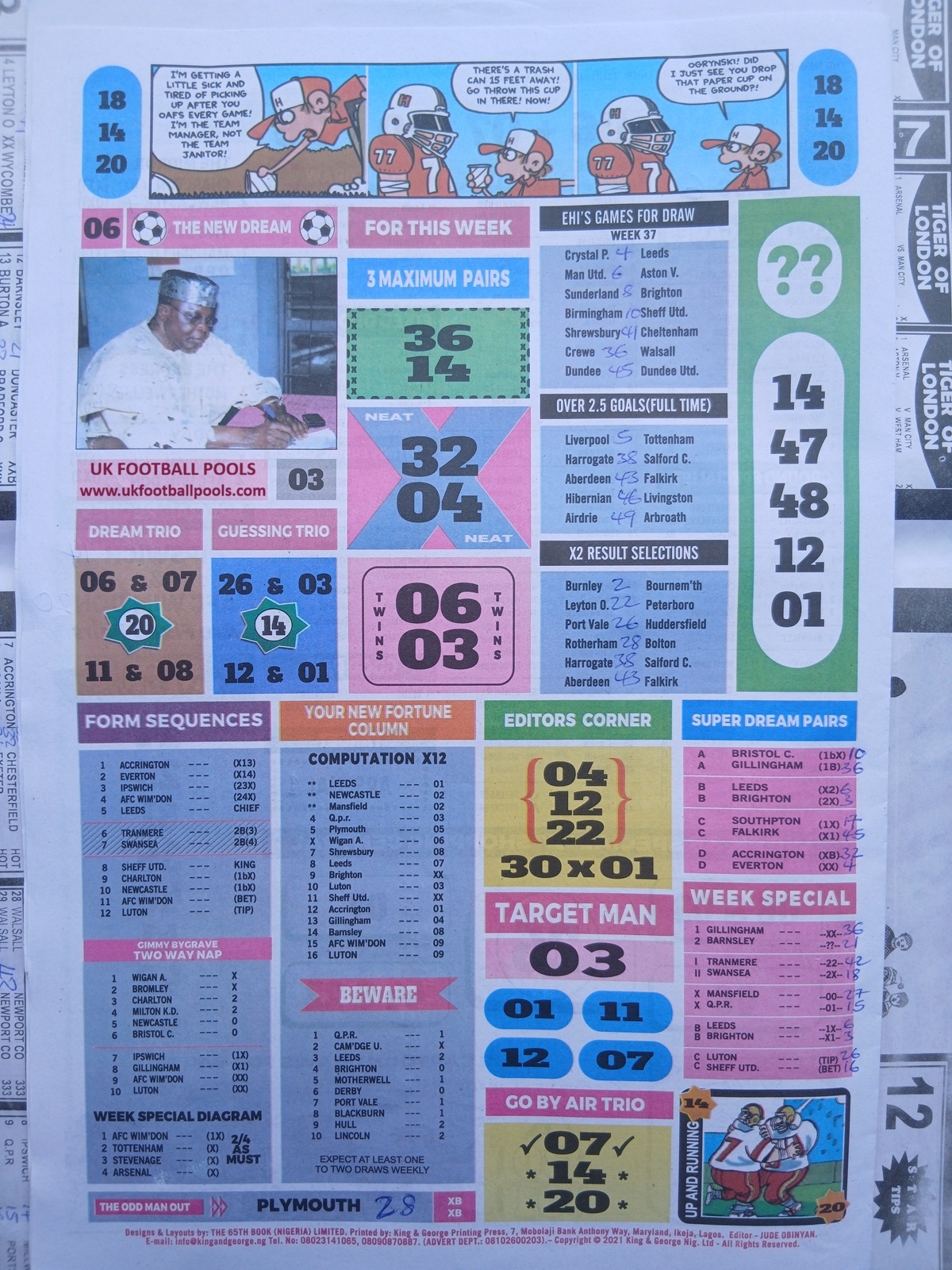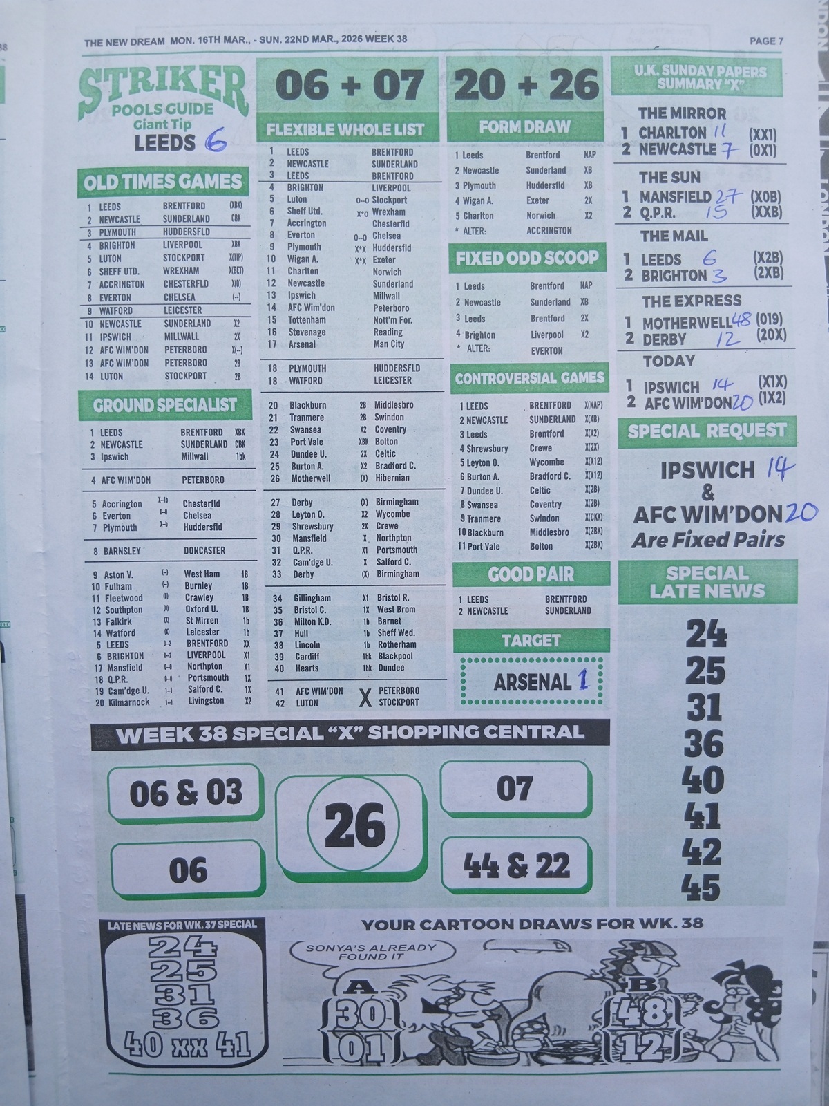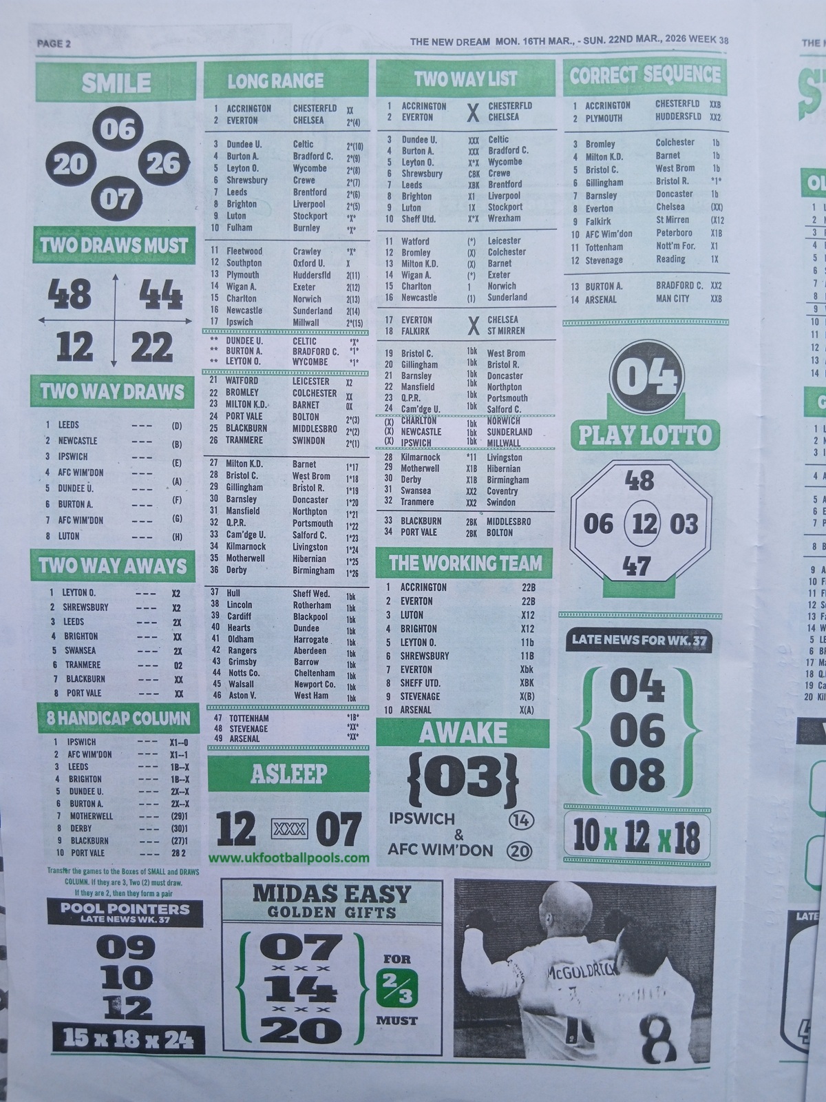 BigWin Soccer, New Dream Late News, Pools Telegraph Late News - Weekly Telegraph Pools Papers