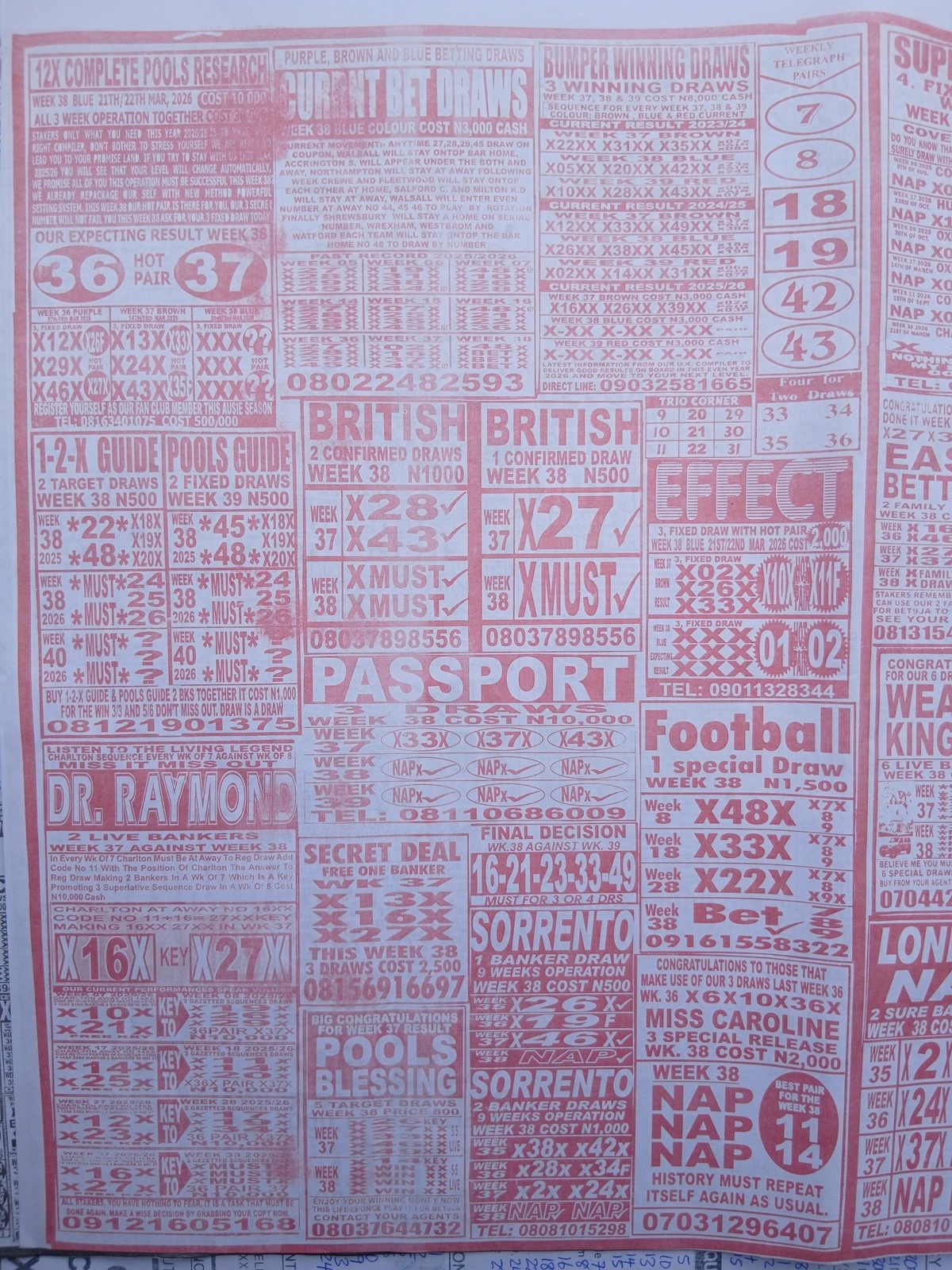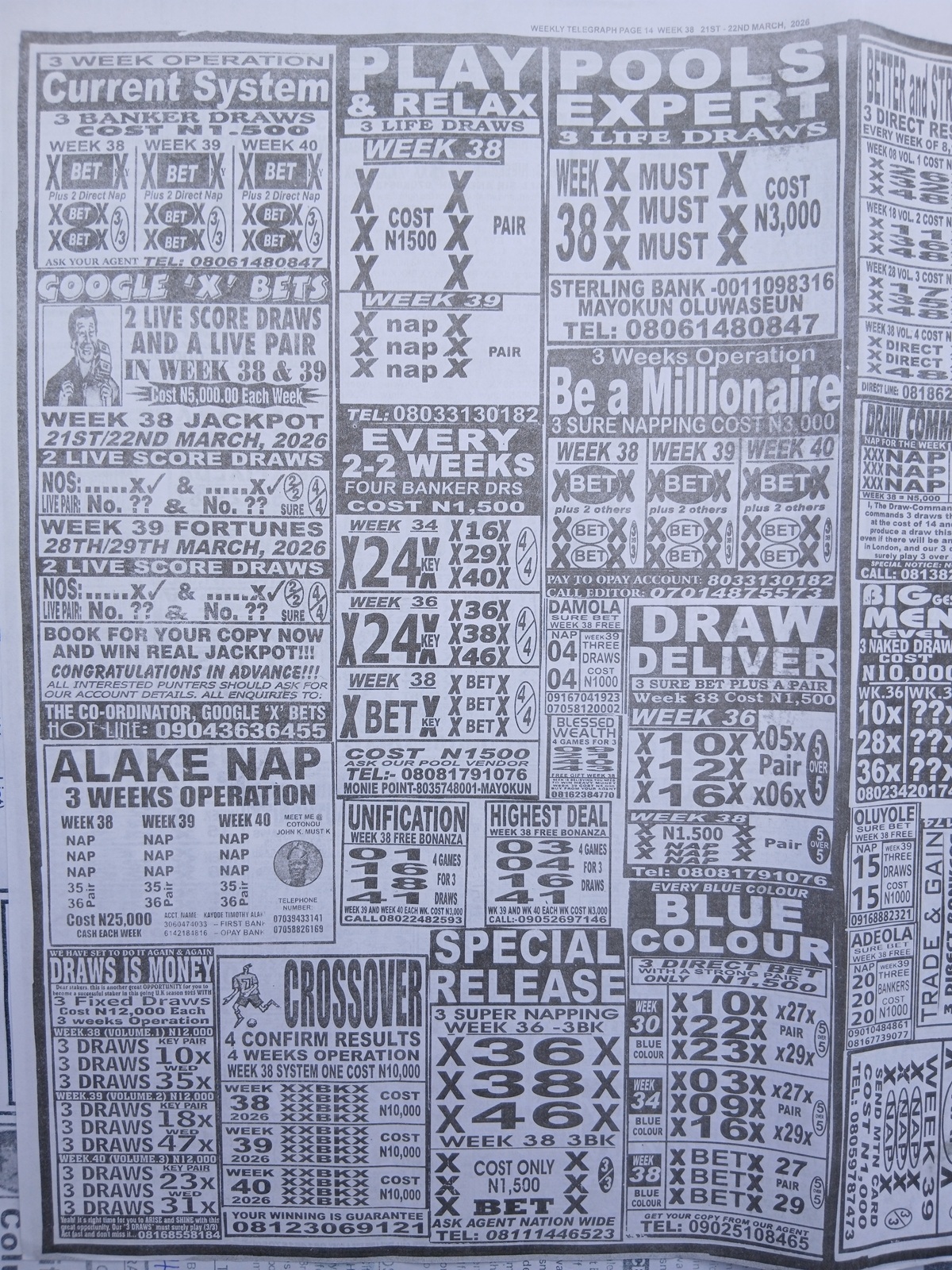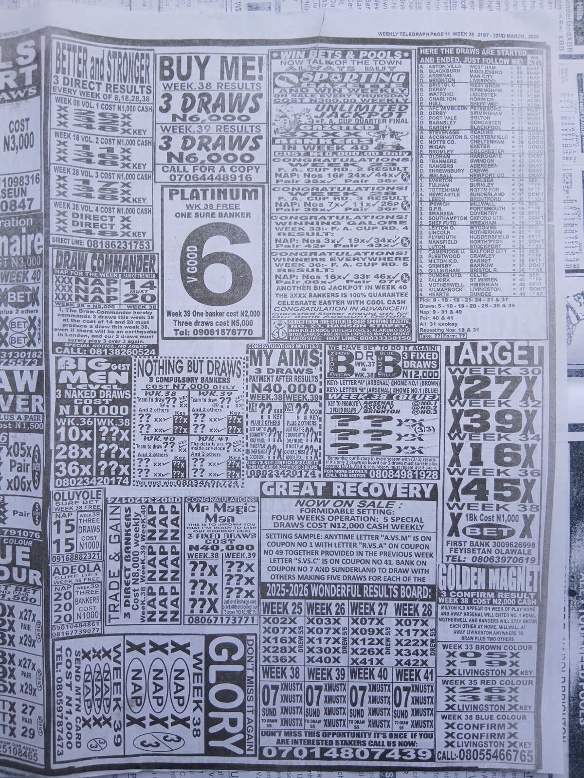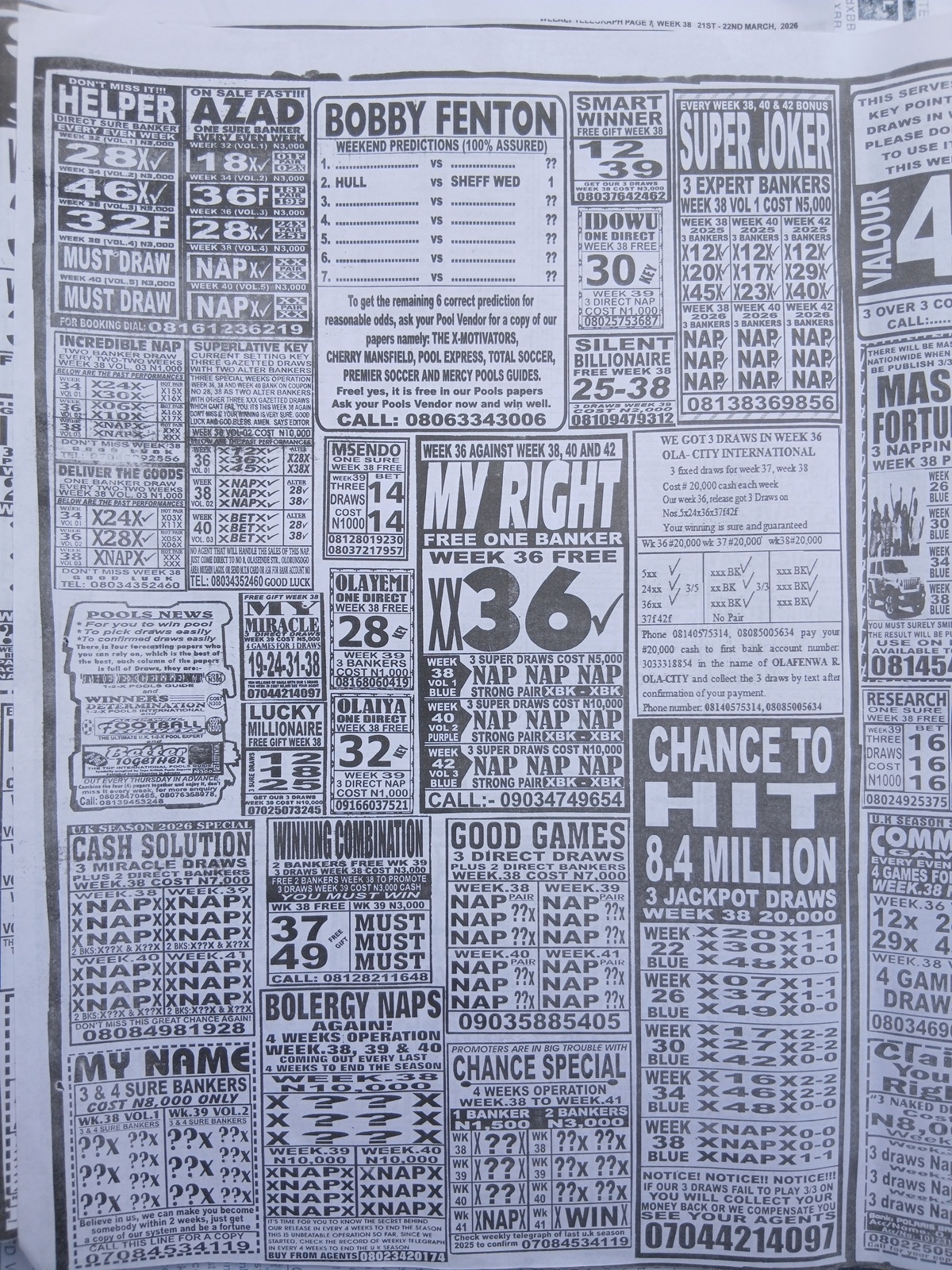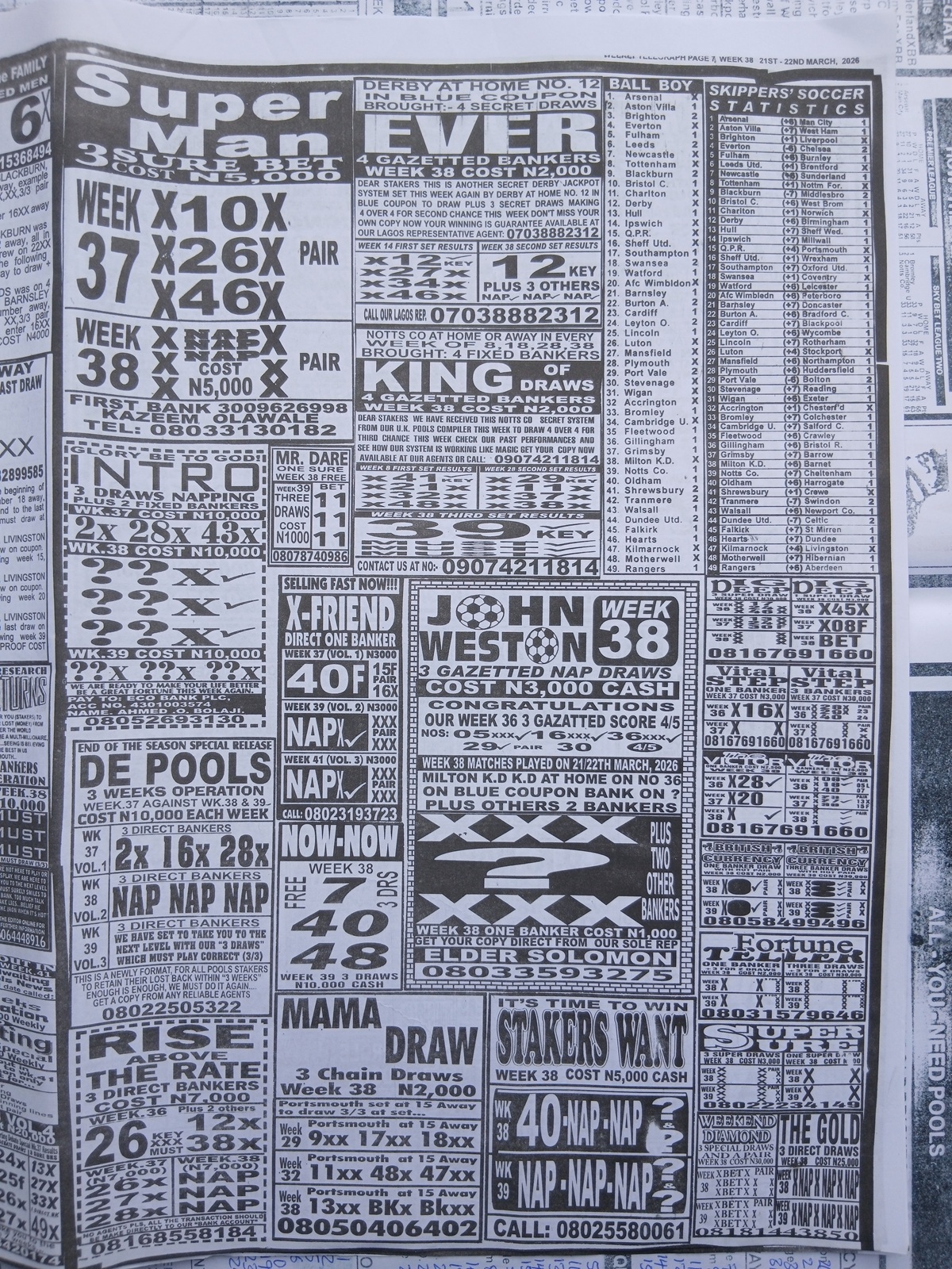 This is the total money you are betting with.Whether you’re chasing banker games, strong draws, or safe permutations, these Week 38 weekly Telegraph papers are designed to guide your strategy and maximize your potential returns. Stay informed, play smart, and take a confident step closer to winning this weekend.