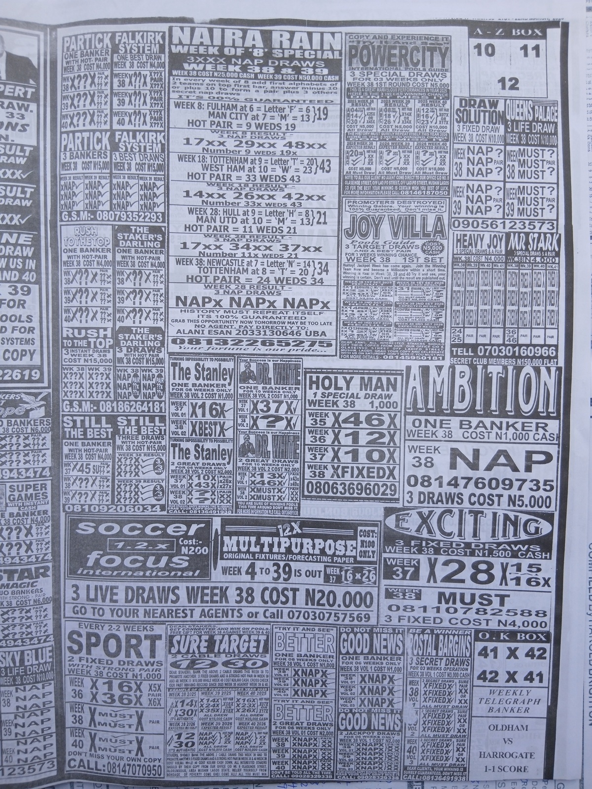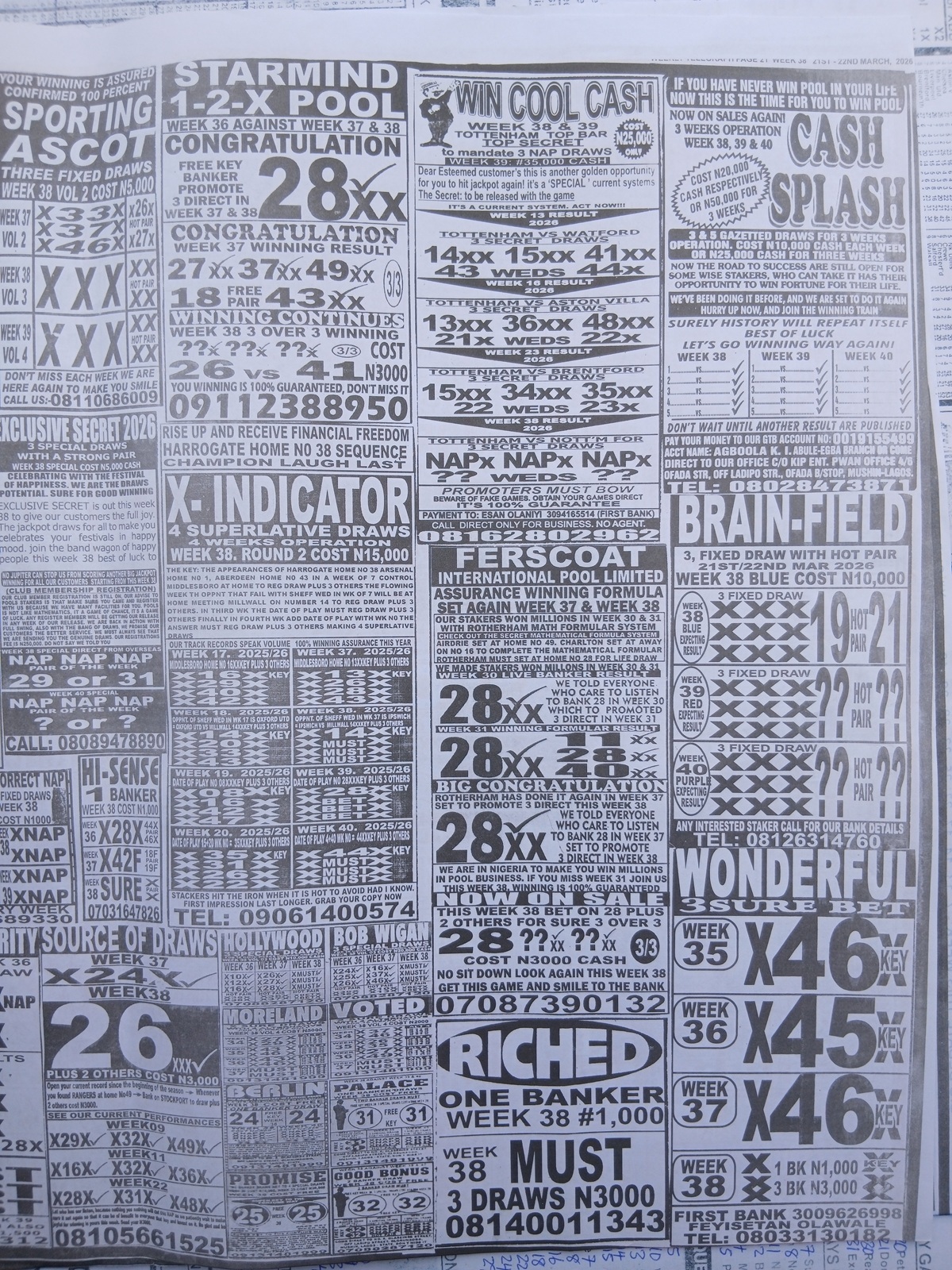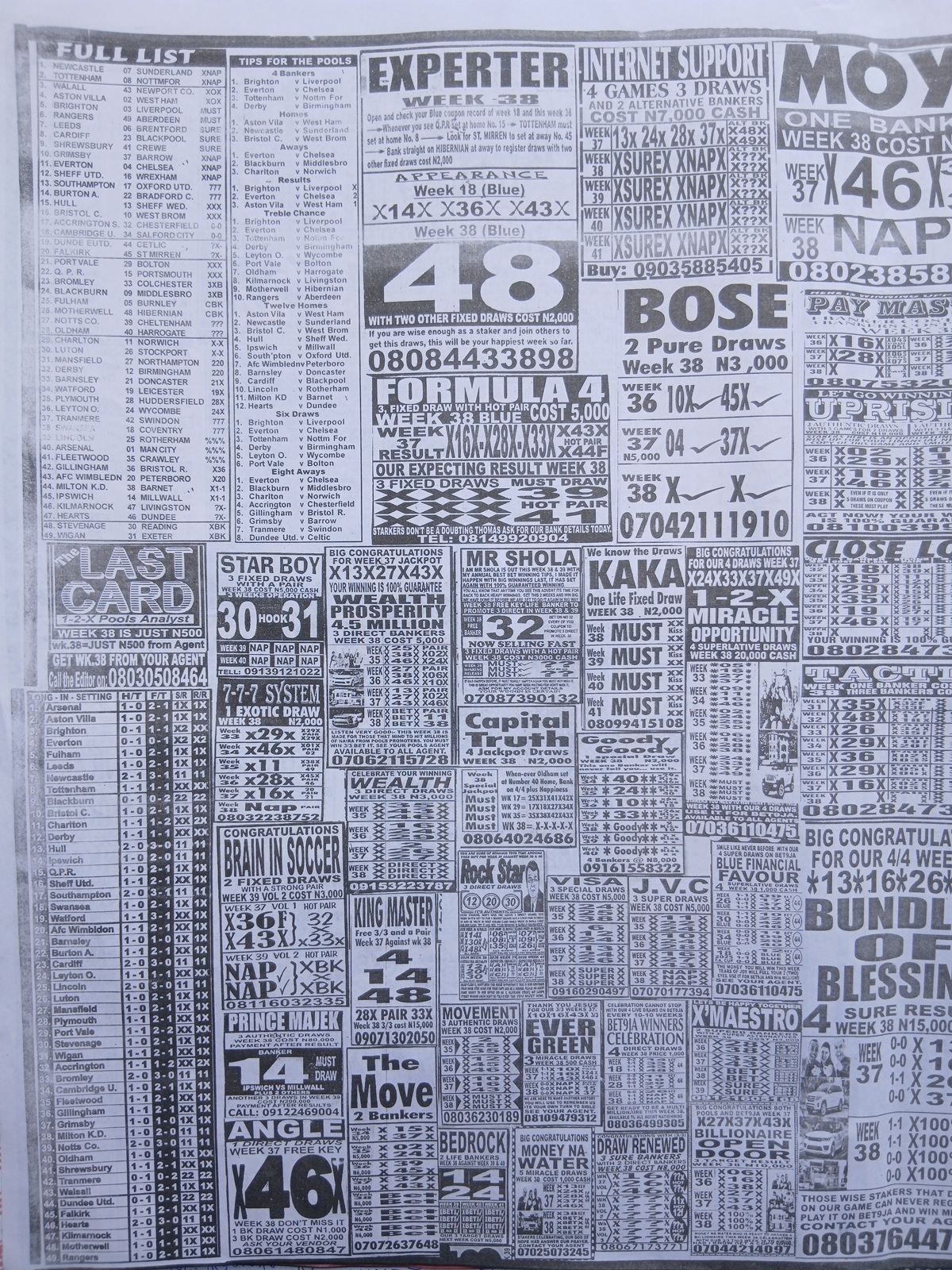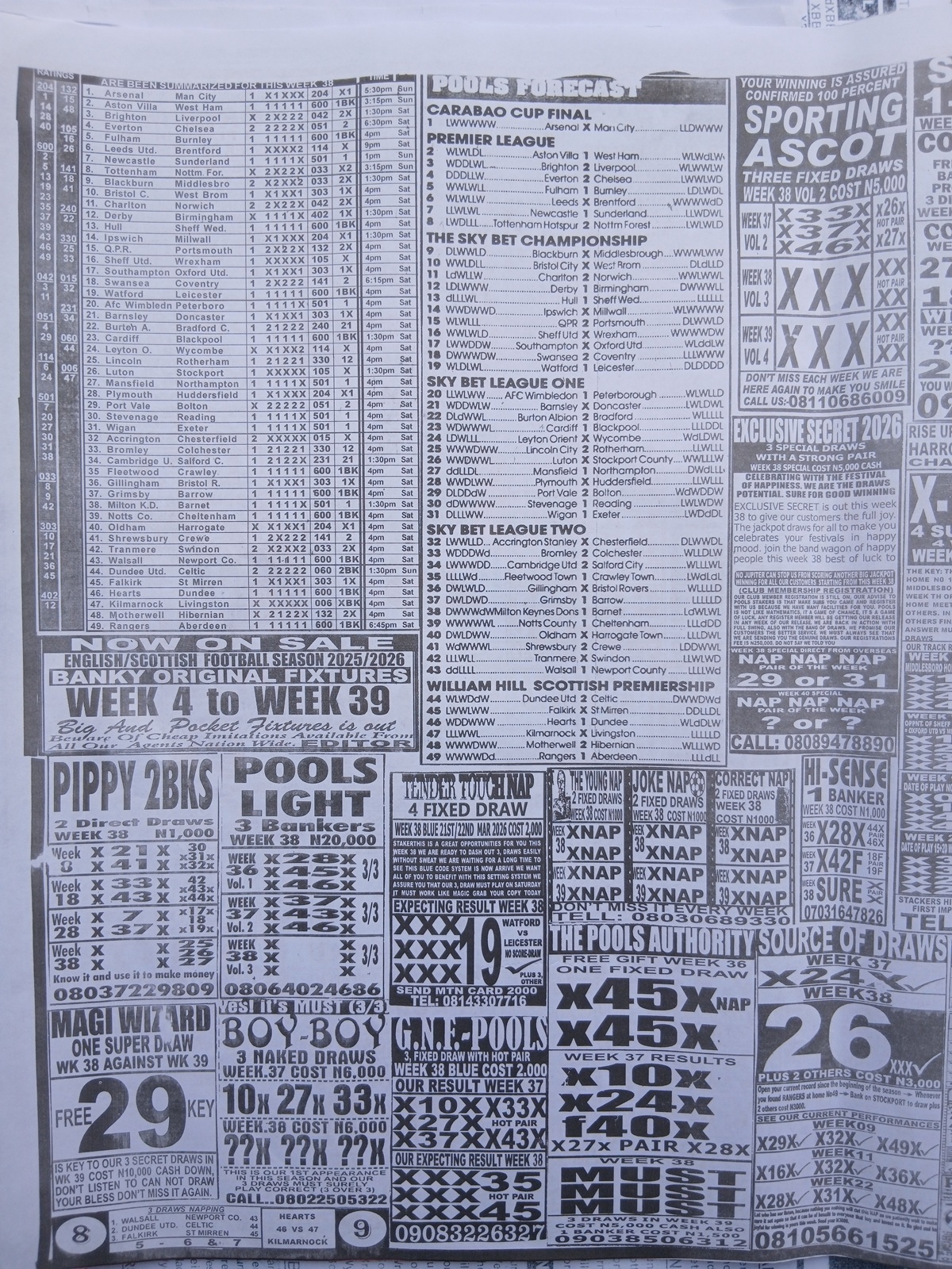 This is the total money you are betting with.Whether you’re chasing banker games, strong draws, or safe permutations, these Week 38 weekly Telegraph papers are designed to guide your strategy and maximize your potential returns. Stay informed, play smart, and take a confident step closer to winning this weekend.