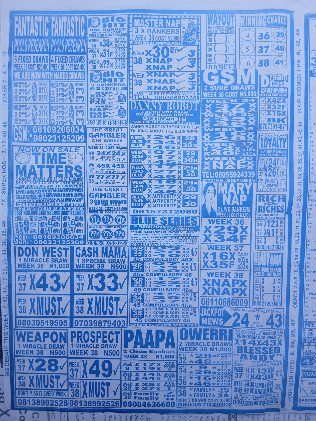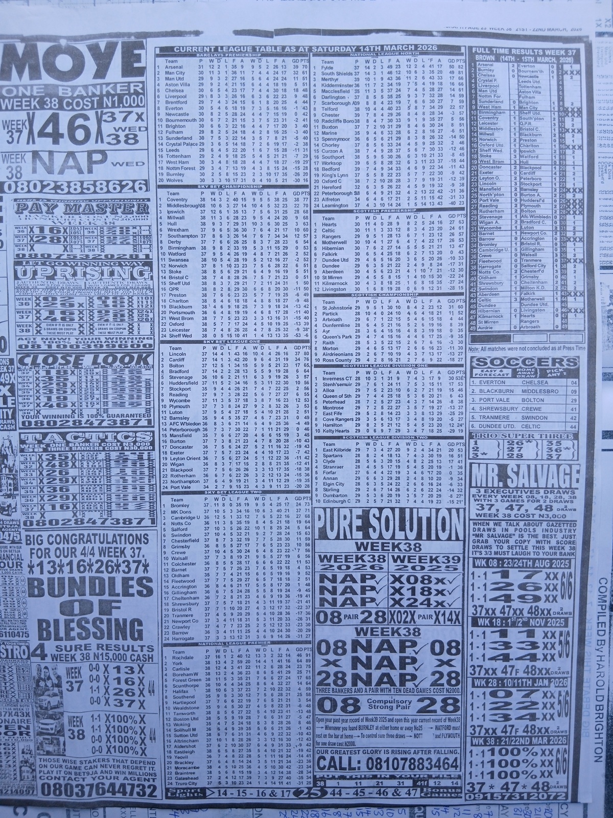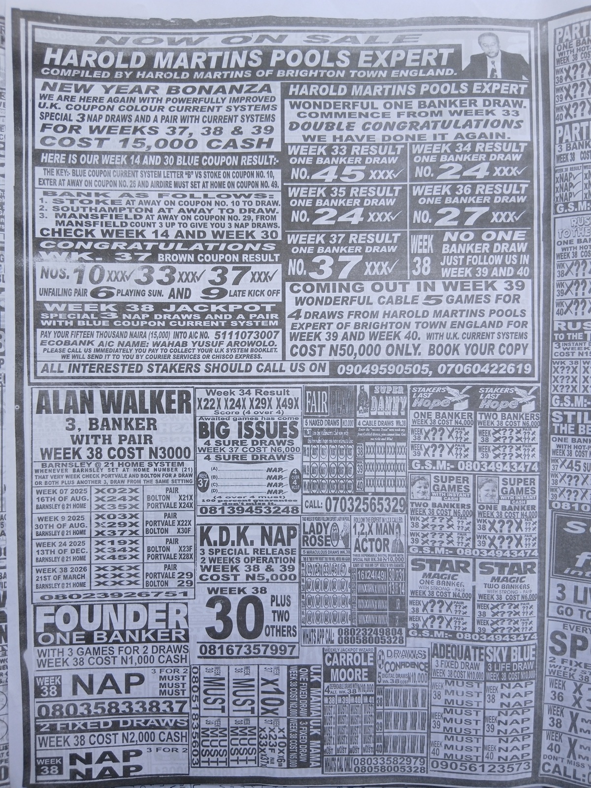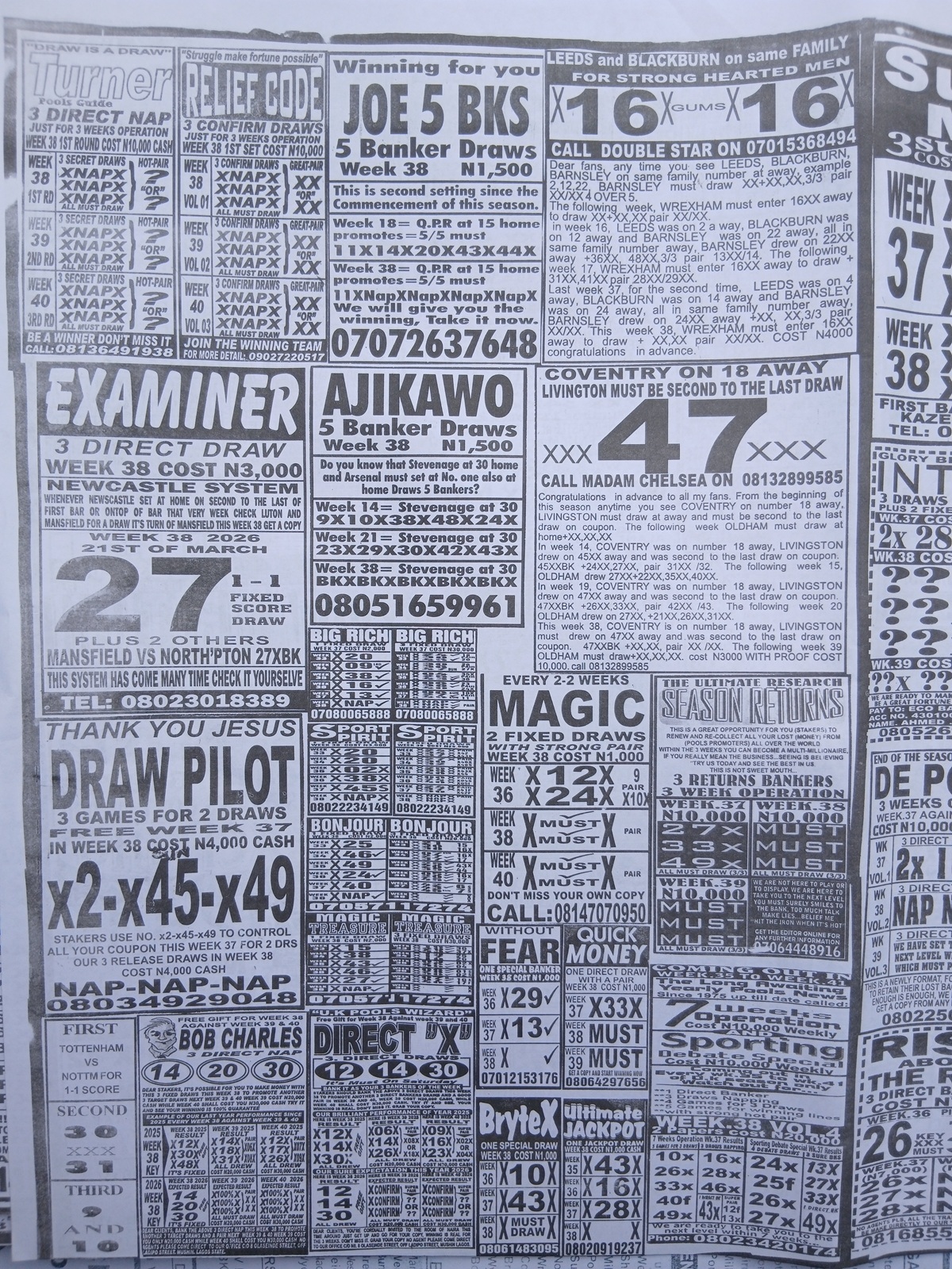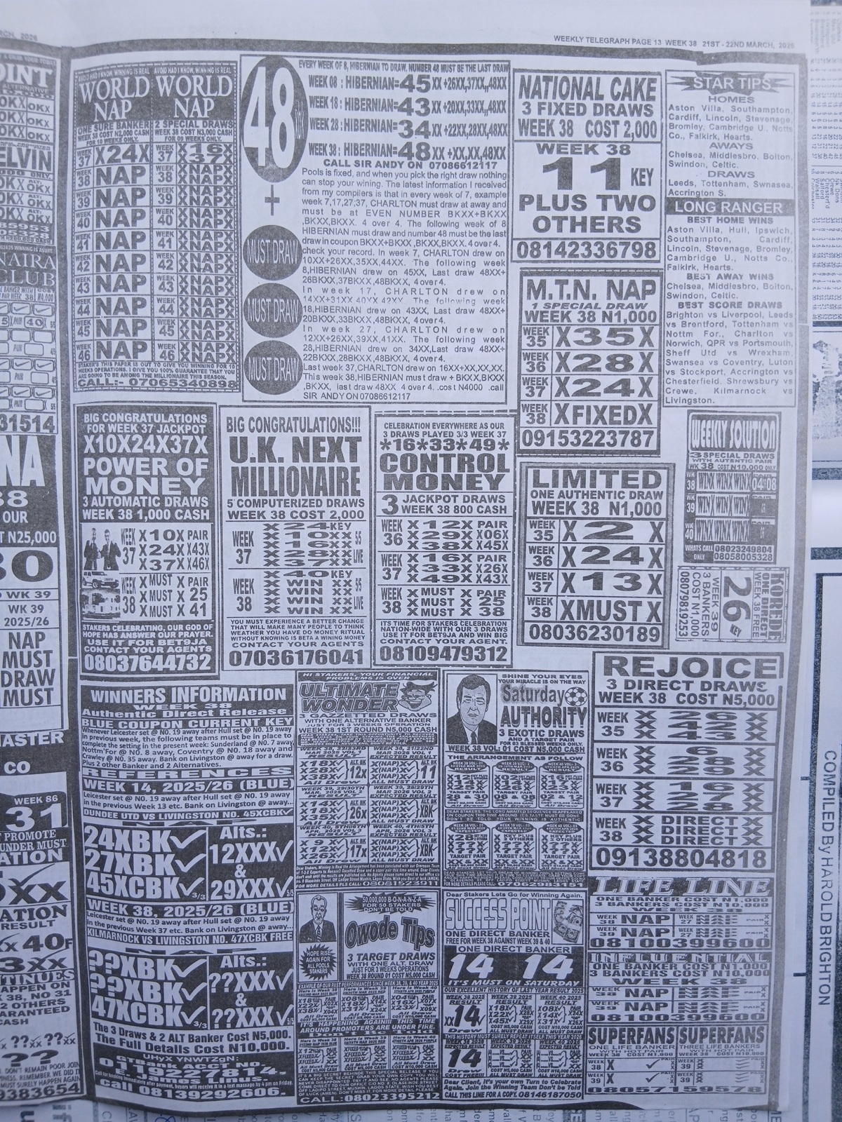 This is the total money you are betting with.Whether you’re chasing banker games, strong draws, or safe permutations, these Week 38 weekly Telegraph papers are designed to guide your strategy and maximize your potential returns. Stay informed, play smart, and take a confident step closer to winning this weekend.