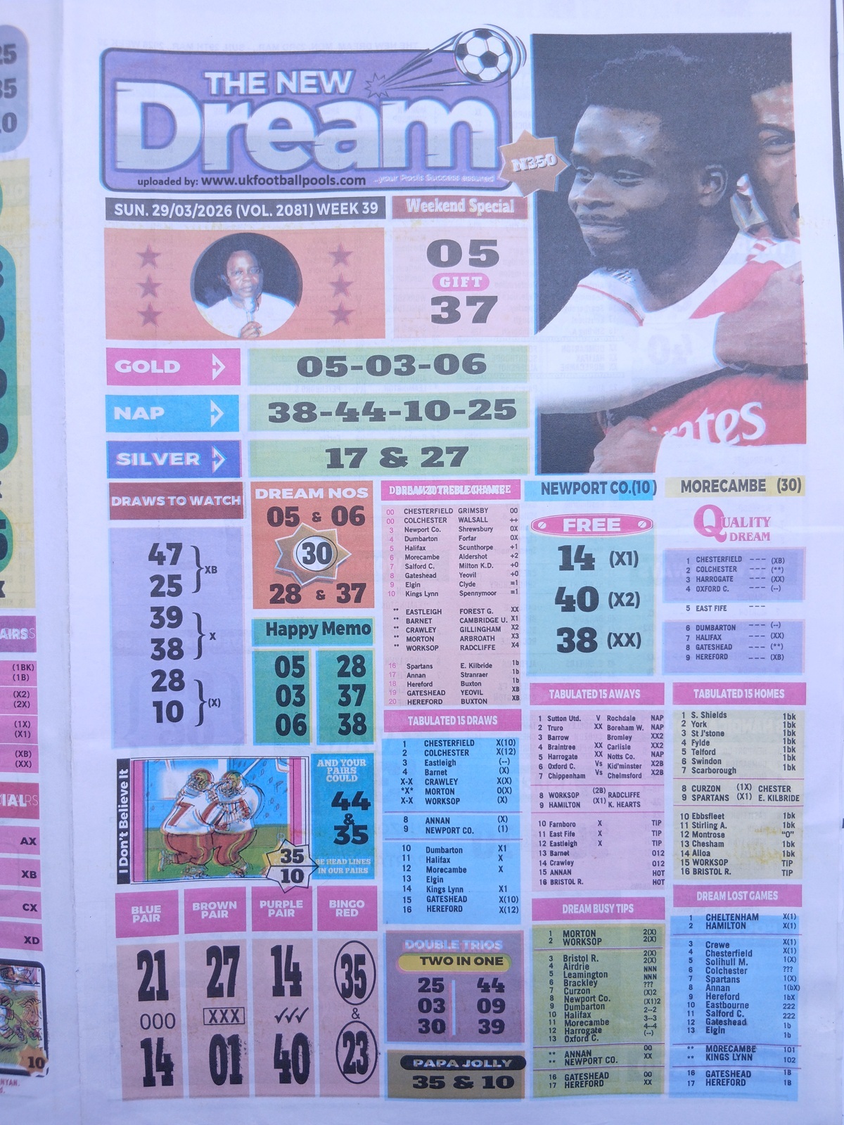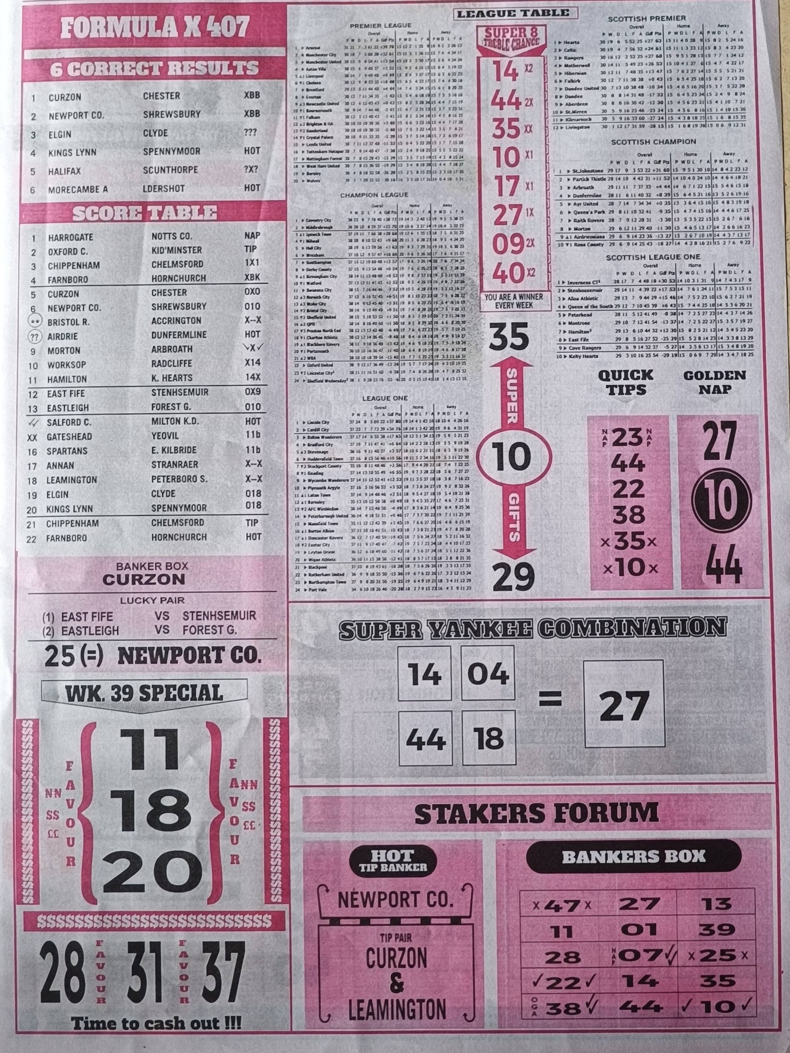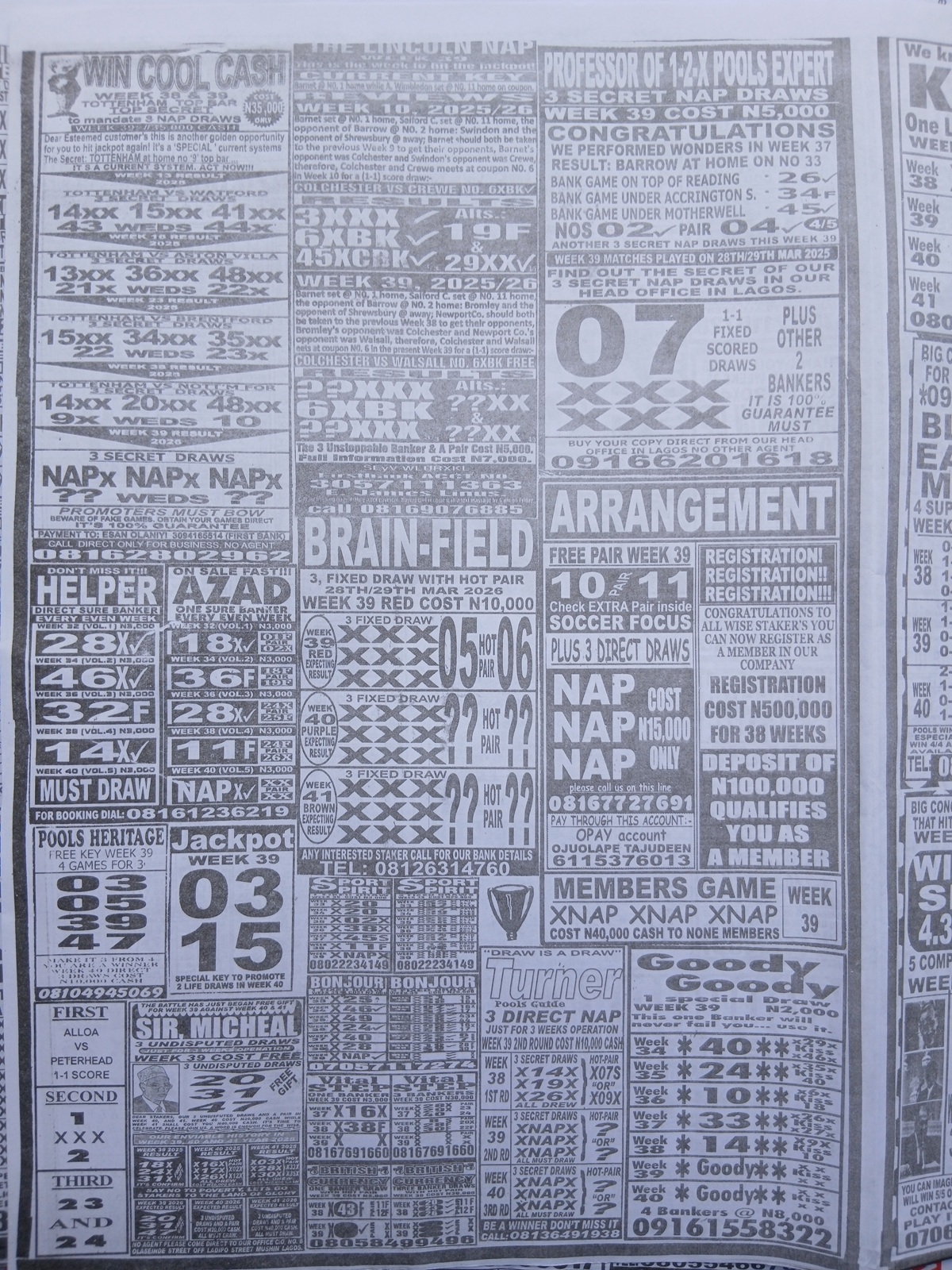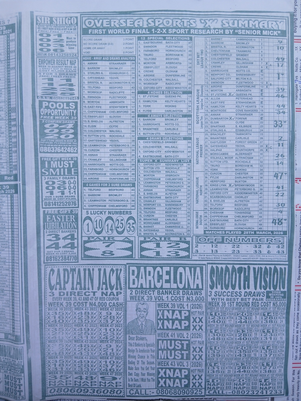 This is the total money you are betting with.Whether you’re chasing banker games, strong draws, or safe permutations, these Week 39 weekly Telegraph papers are designed to guide your strategy and maximize your potential returns. Stay informed, play smart, and take a confident step closer to winning this weekend.