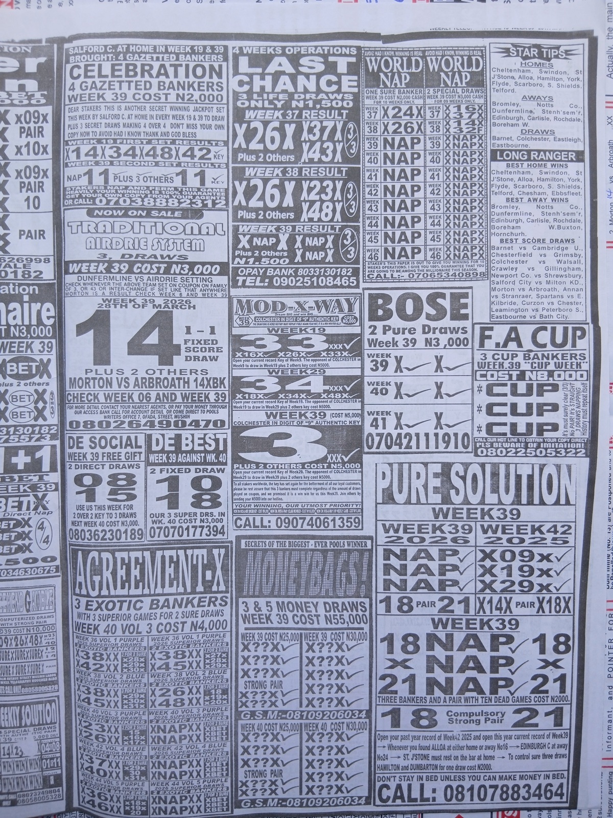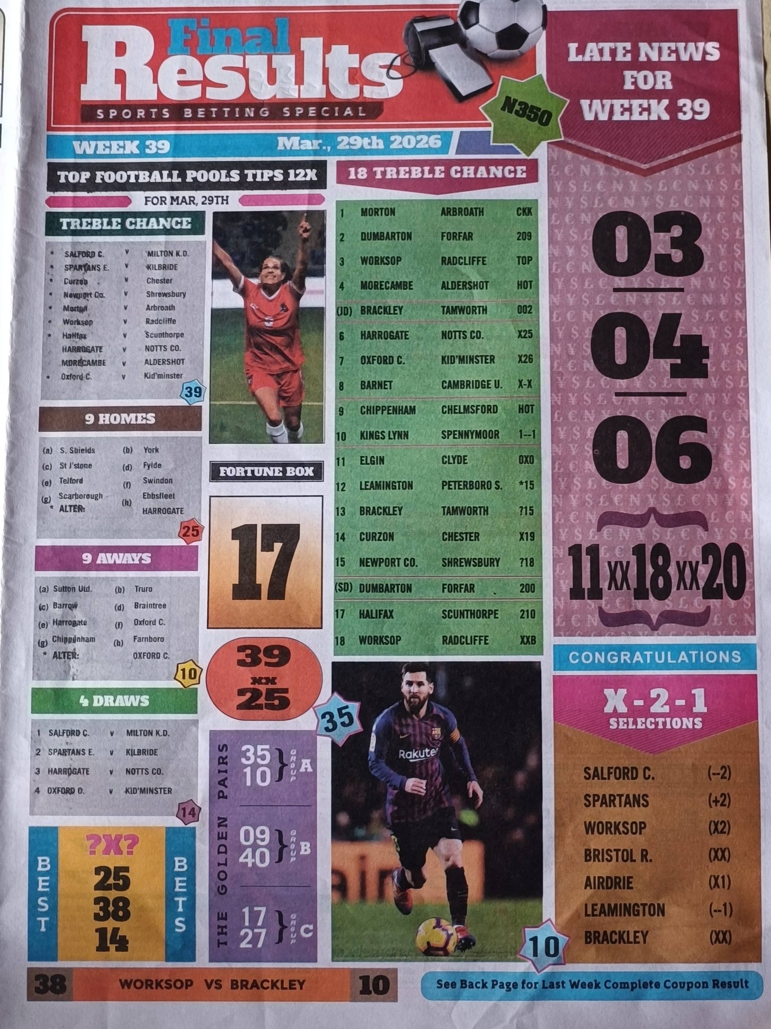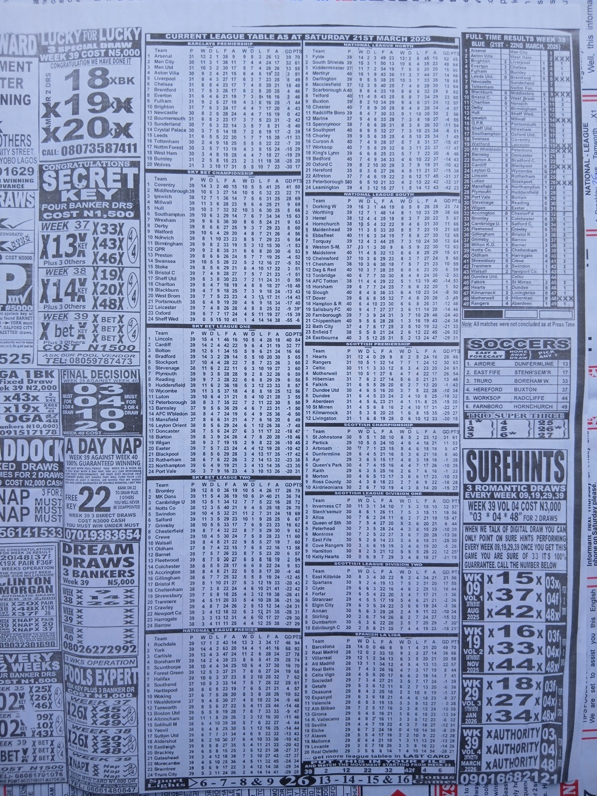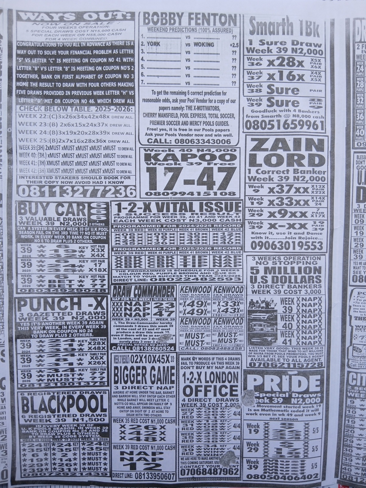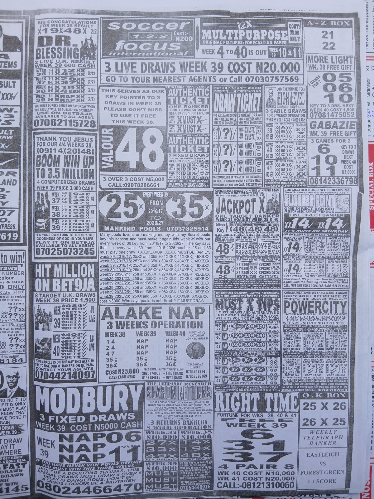 This is the total money you are betting with.Whether you’re chasing banker games, strong draws, or safe permutations, these Week 39 weekly Telegraph papers are designed to guide your strategy and maximize your potential returns. Stay informed, play smart, and take a confident step closer to winning this weekend.