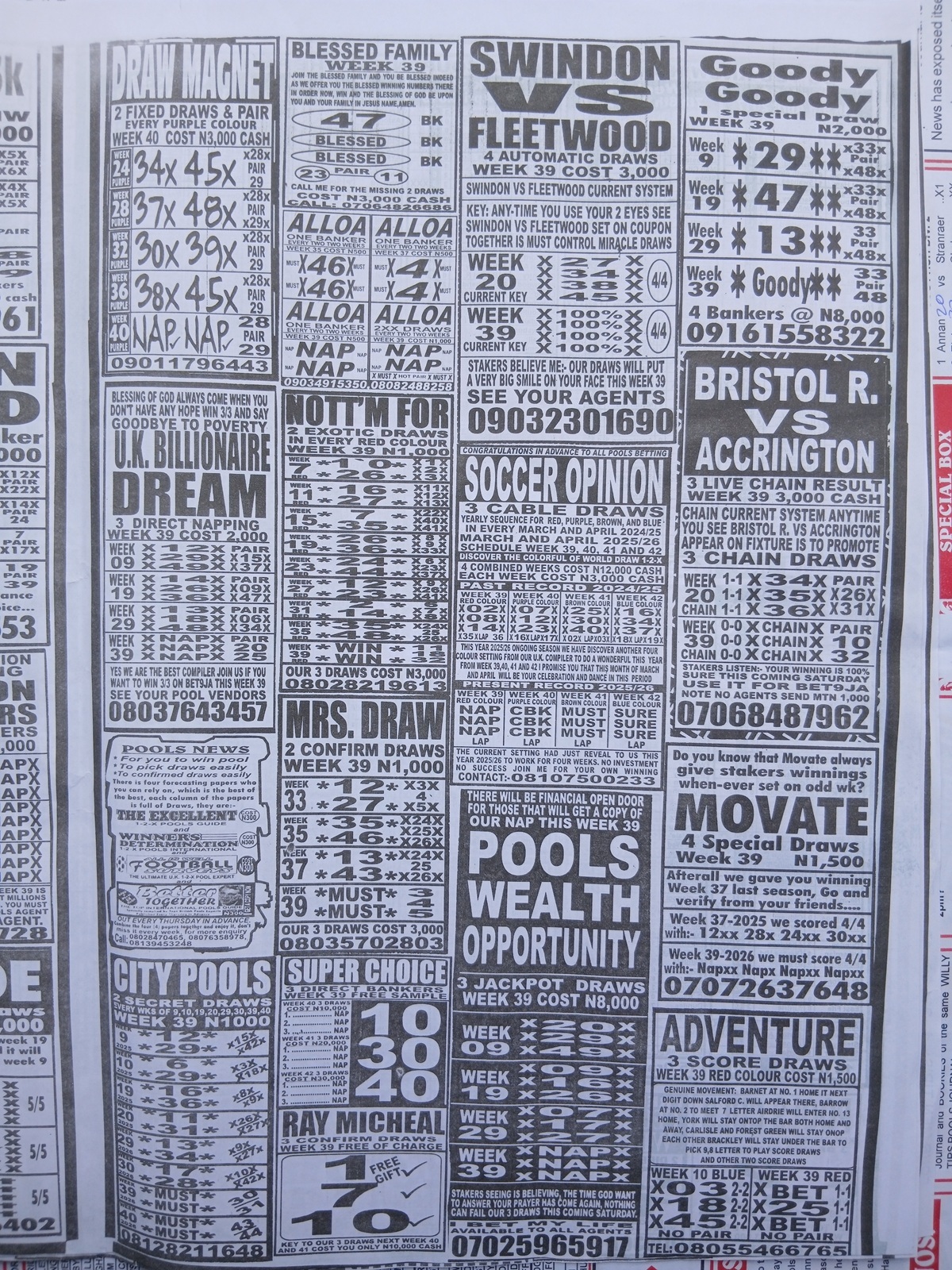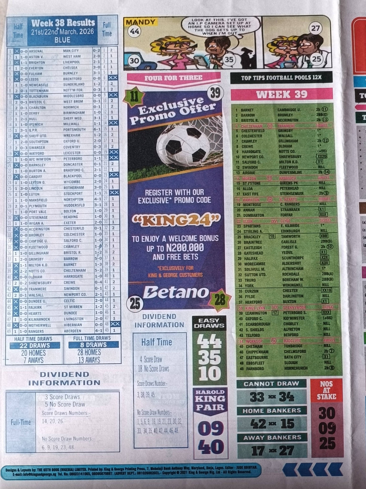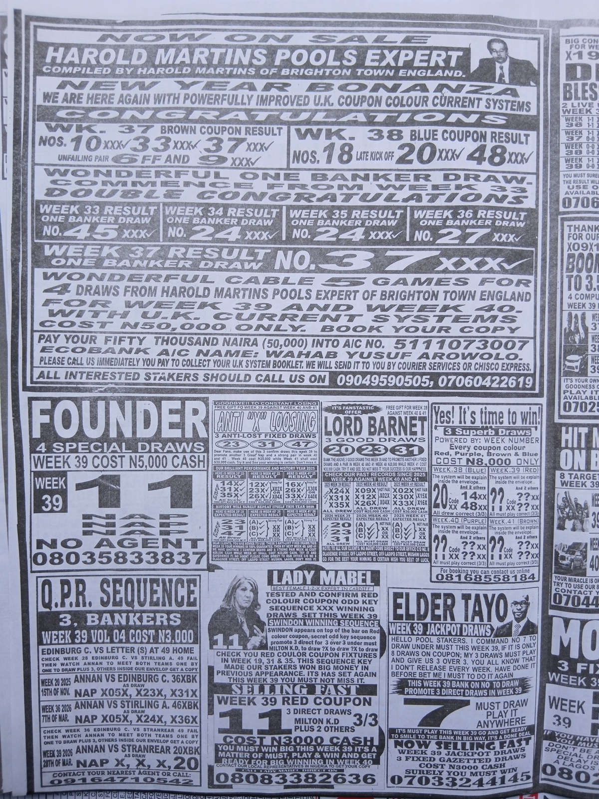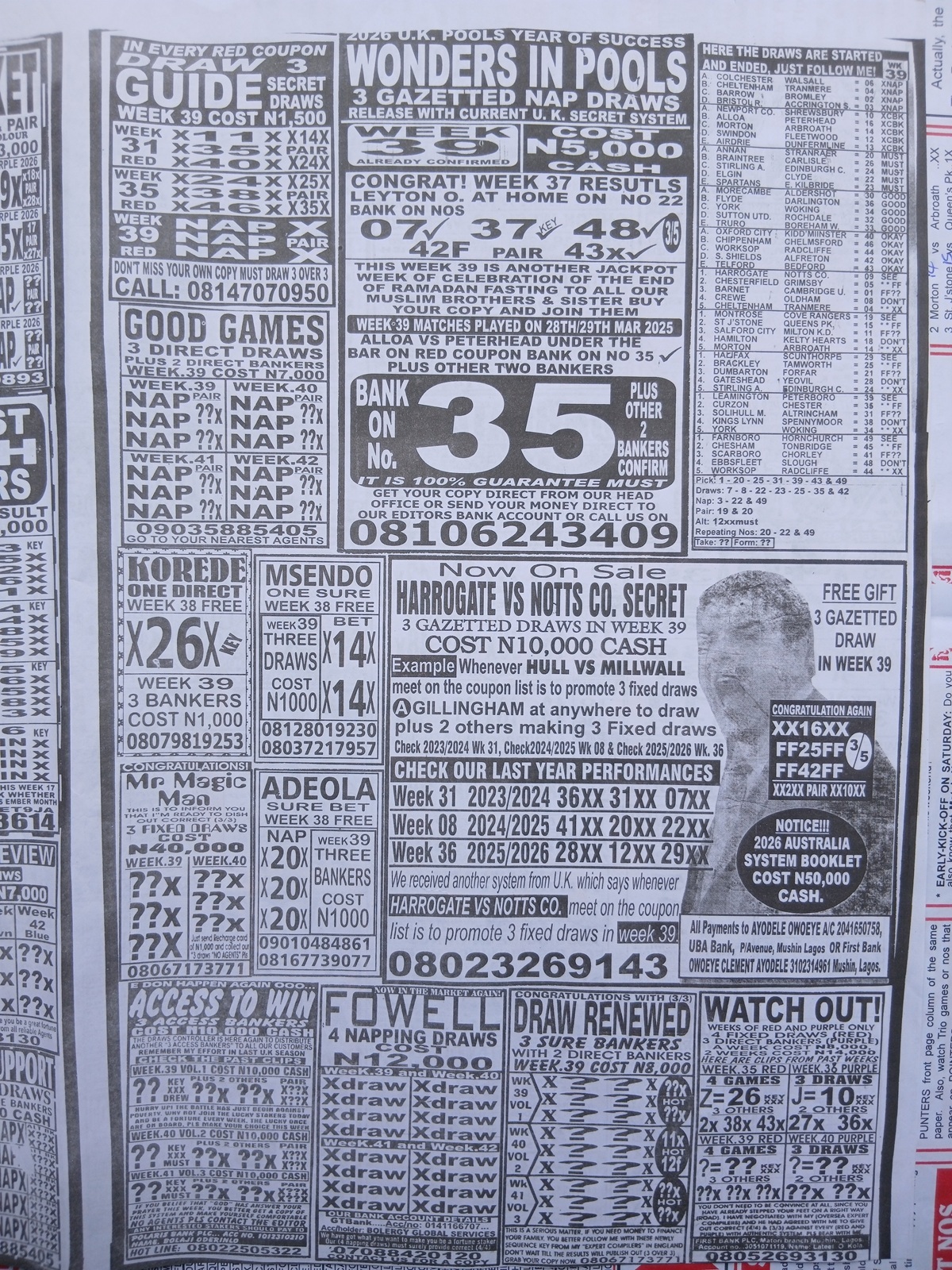 This is the total money you are betting with.Whether you’re chasing banker games, strong draws, or safe permutations, these Week 39 weekly Telegraph papers are designed to guide your strategy and maximize your potential returns. Stay informed, play smart, and take a confident step closer to winning this weekend.