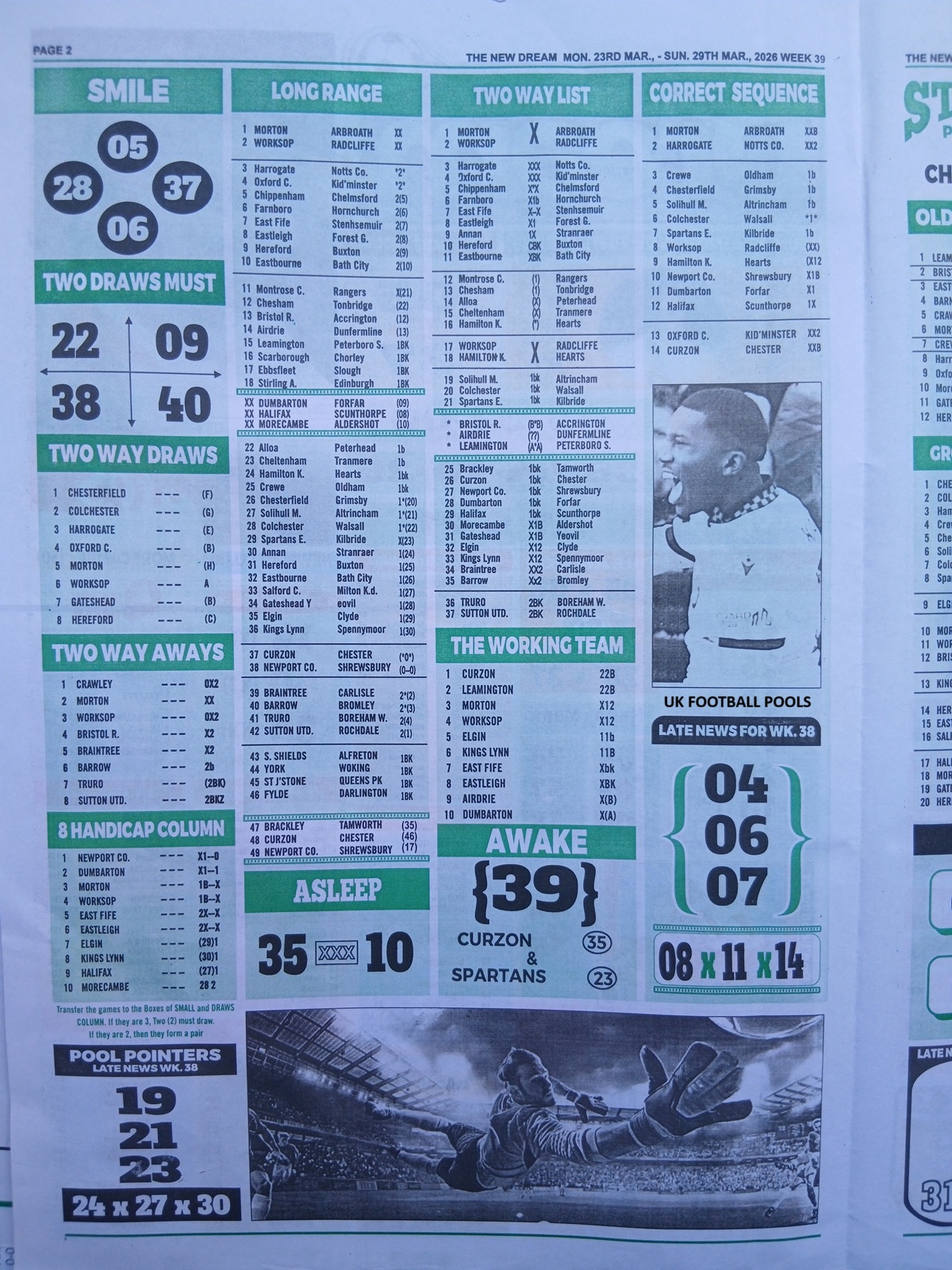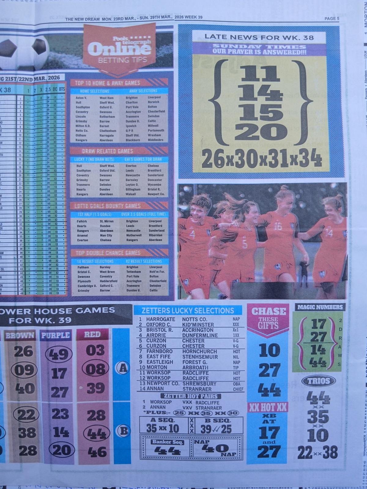BigWin Soccer, New Dream Late News, Pools Telegraph Late News - Weekly Telegraph Pools Papers