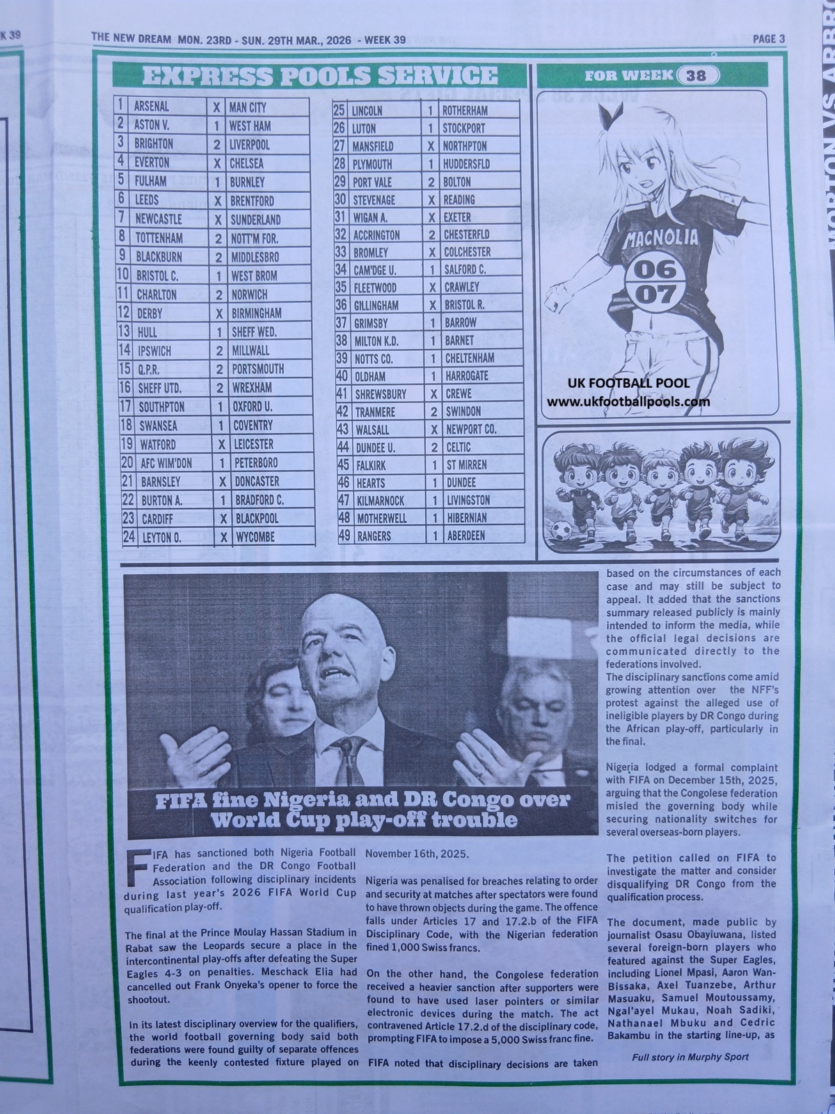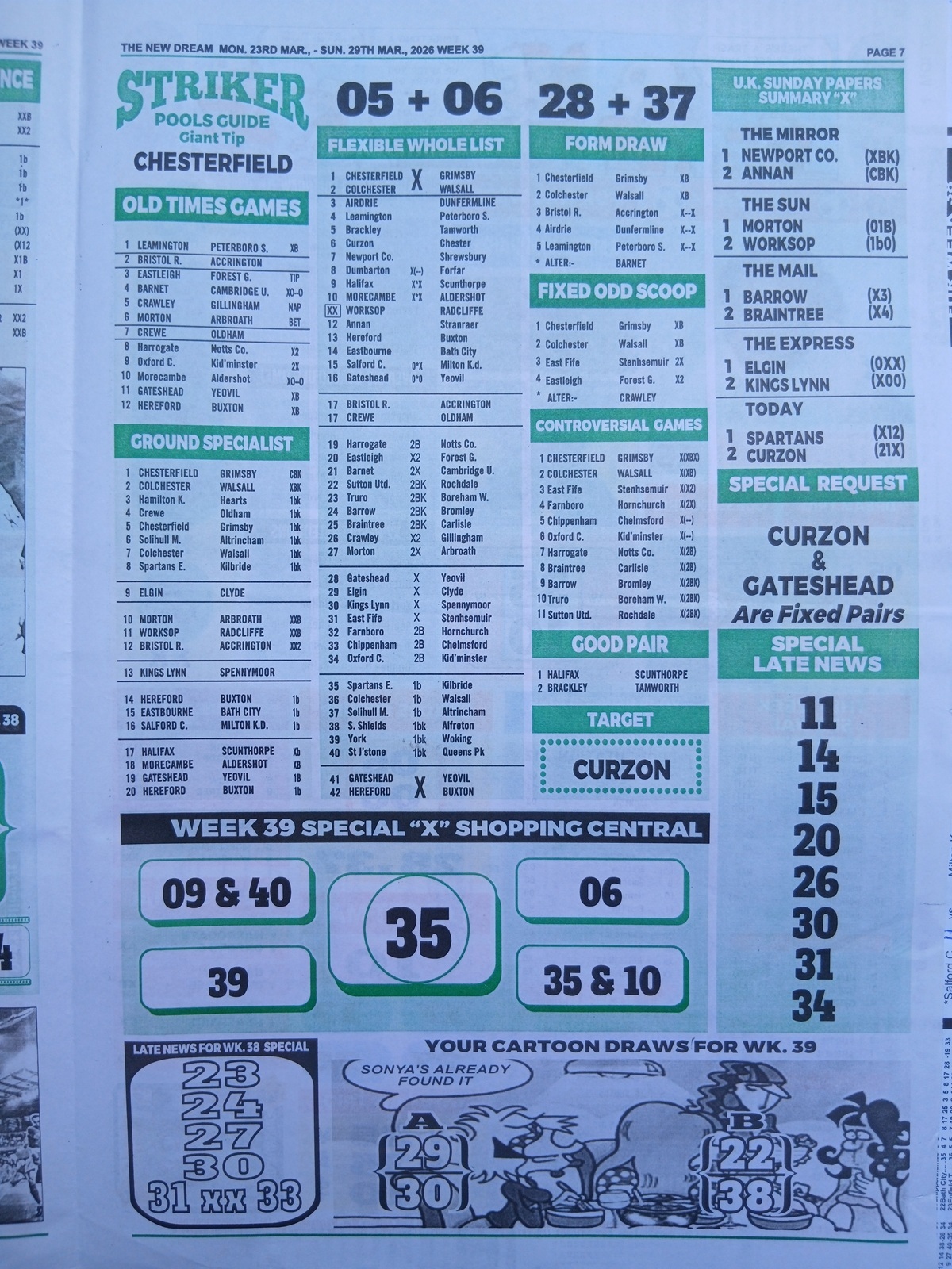 Related Post: Week 39 Pool Late News Papers 2026 – UK 2026/2027 Season